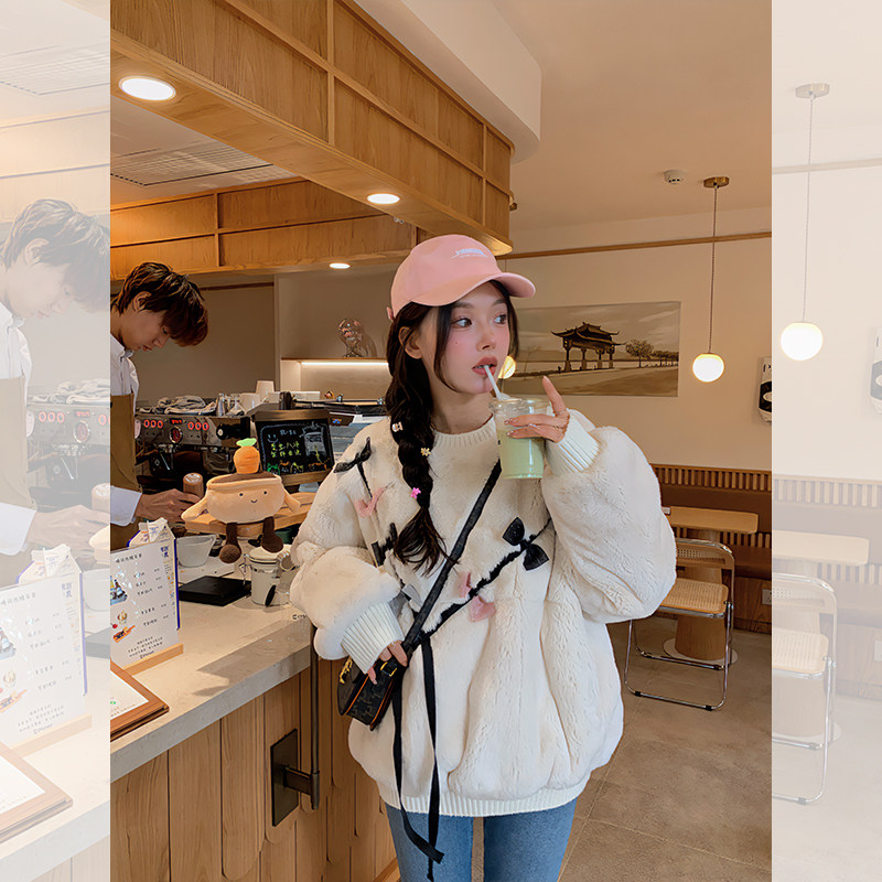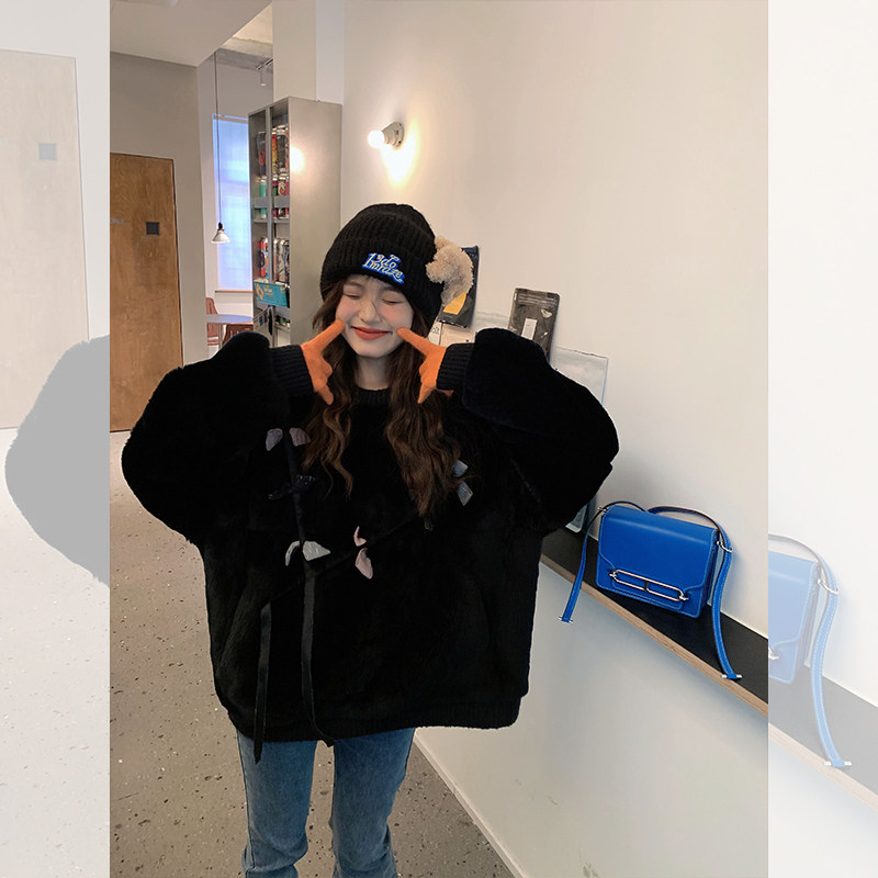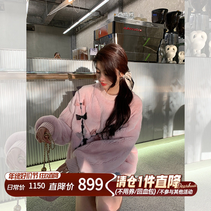 Dearhua xiaohua's "Butterfly Flower" REX Rabbit Purple Cao Wintering Year Young Sweater Mao Mao Wai Sui Set Set