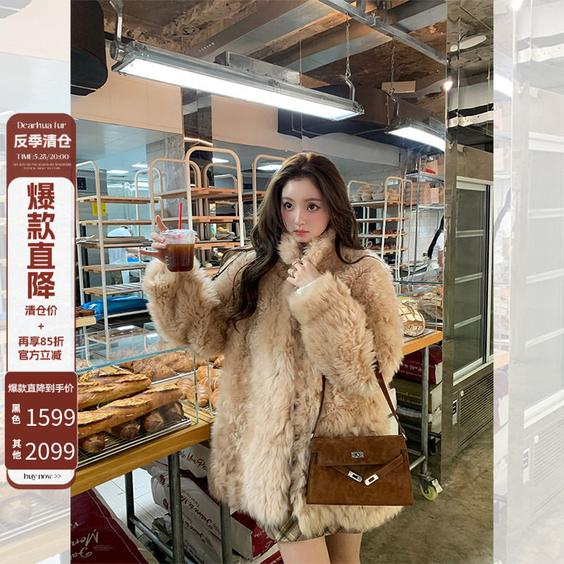 Dearhua xiaohuajia "Корейская женская женская тока" Импортировал тосканское мех интегрированное меховое пальто женское пальто