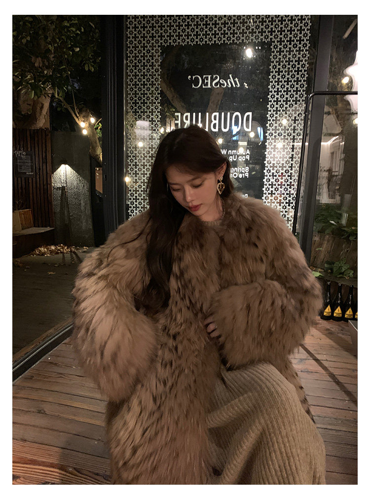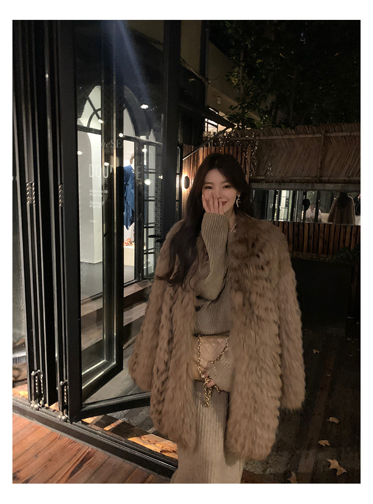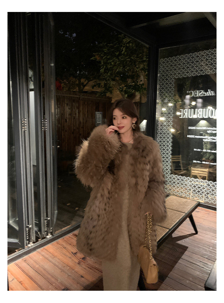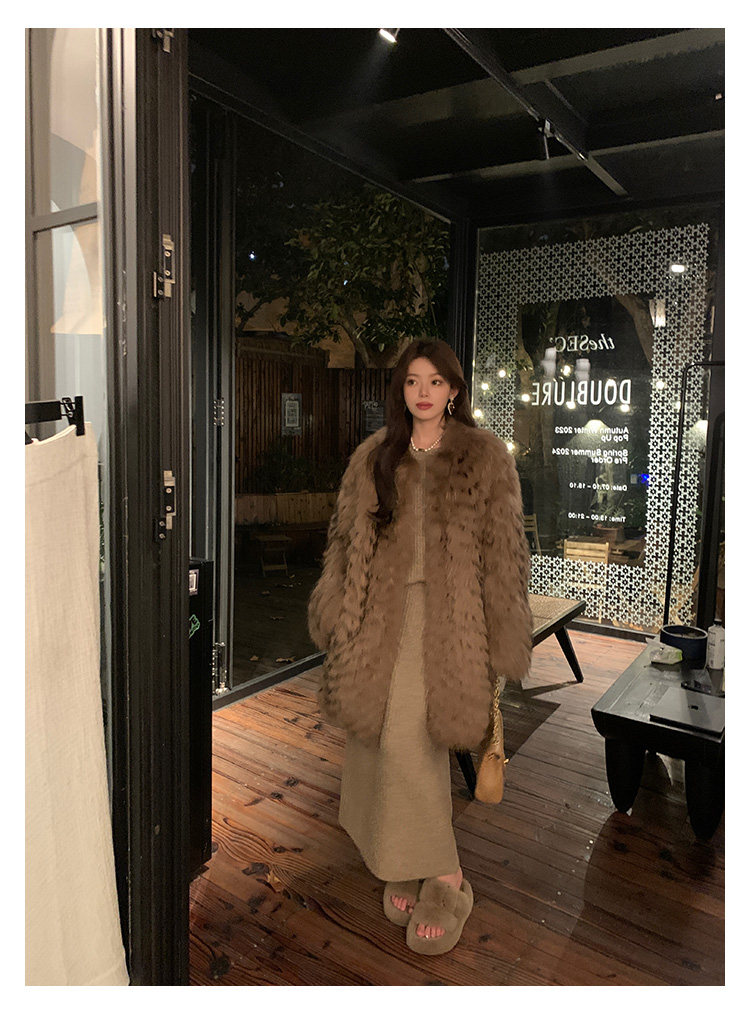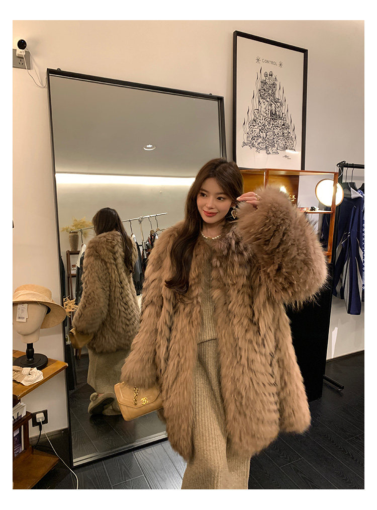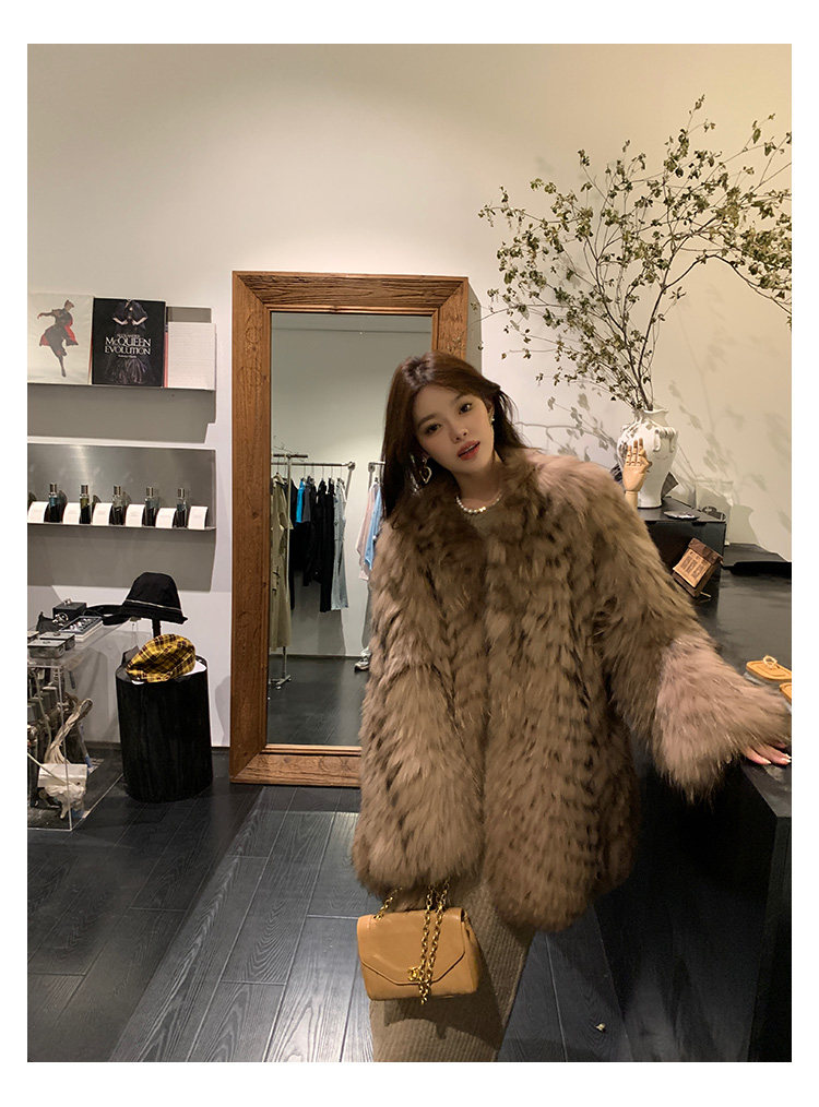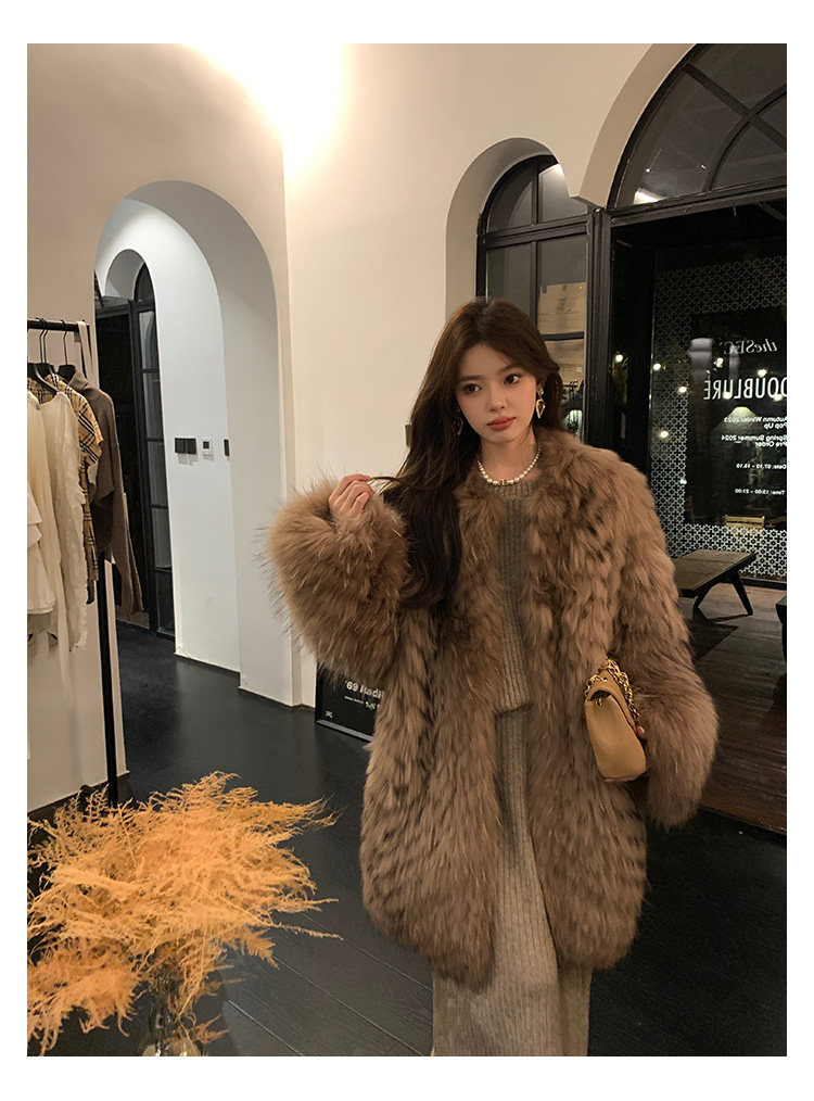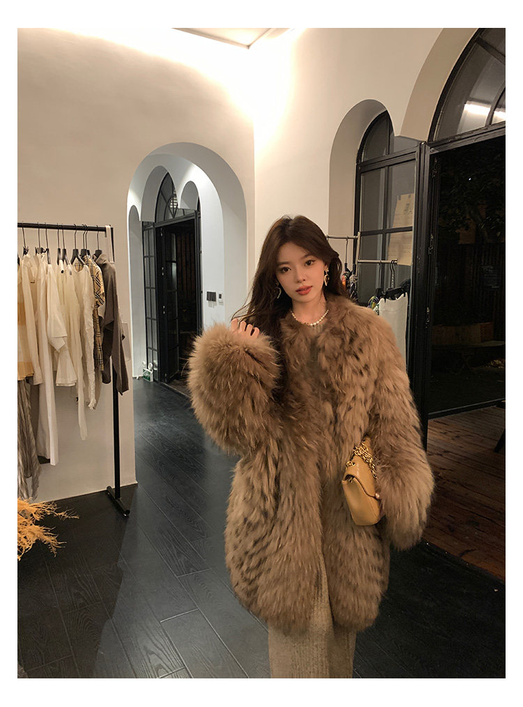 DEARHUA Xiaohuajia женское меховое пальто средней длины в полоску из импортного меха енота "сандаловое дерево со средней нотой"