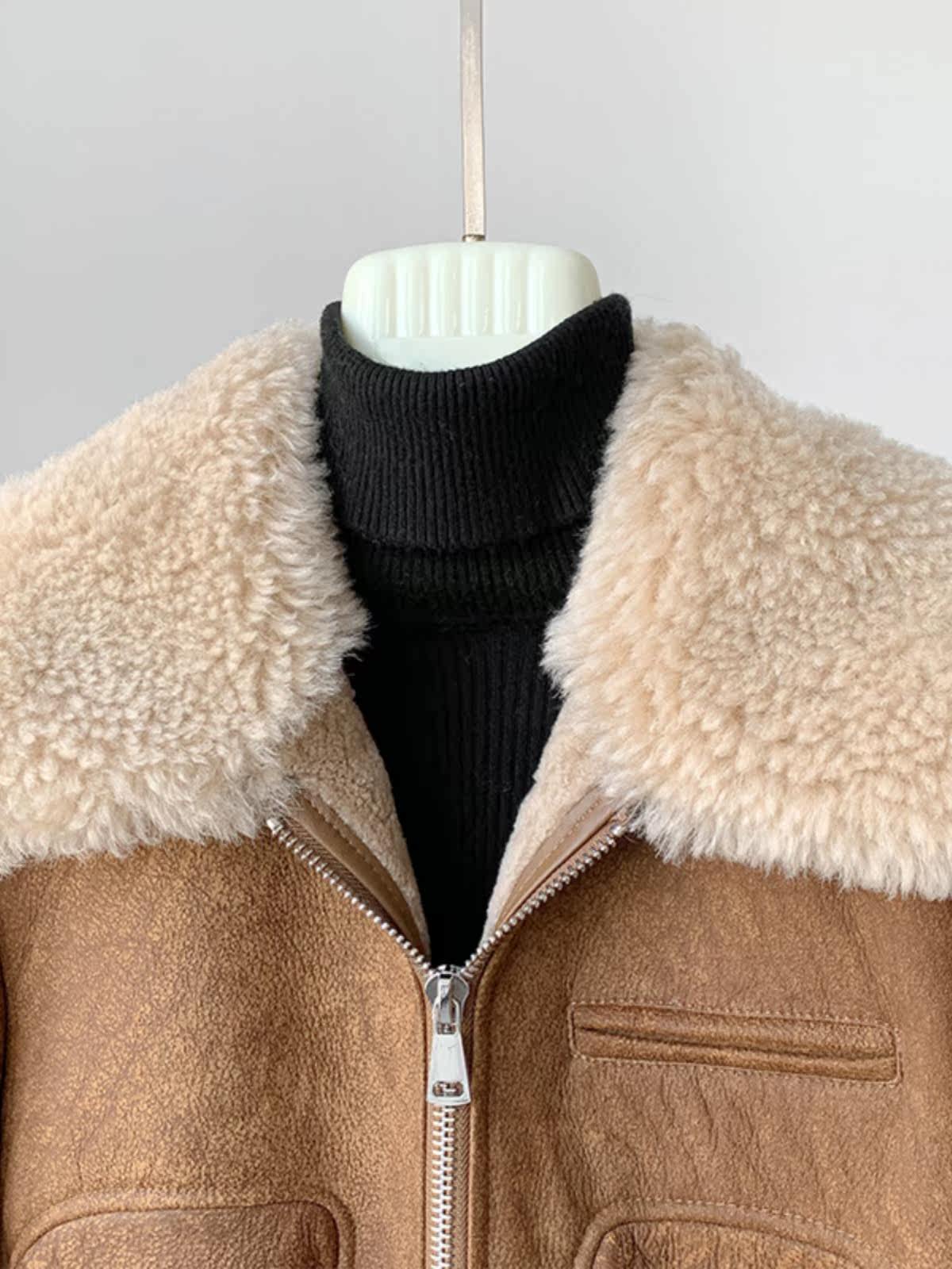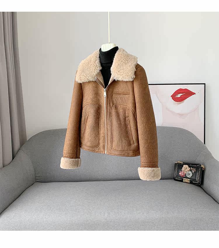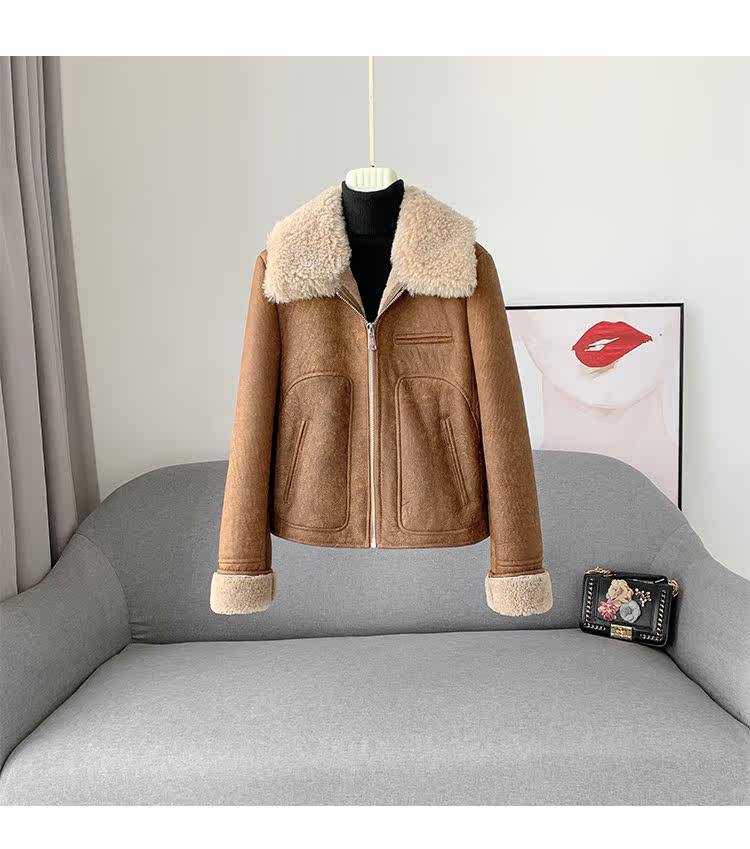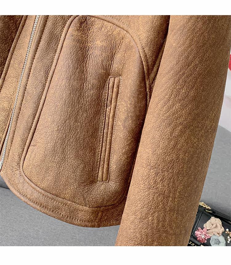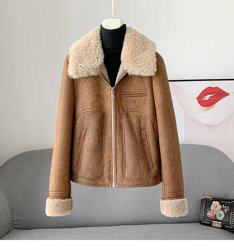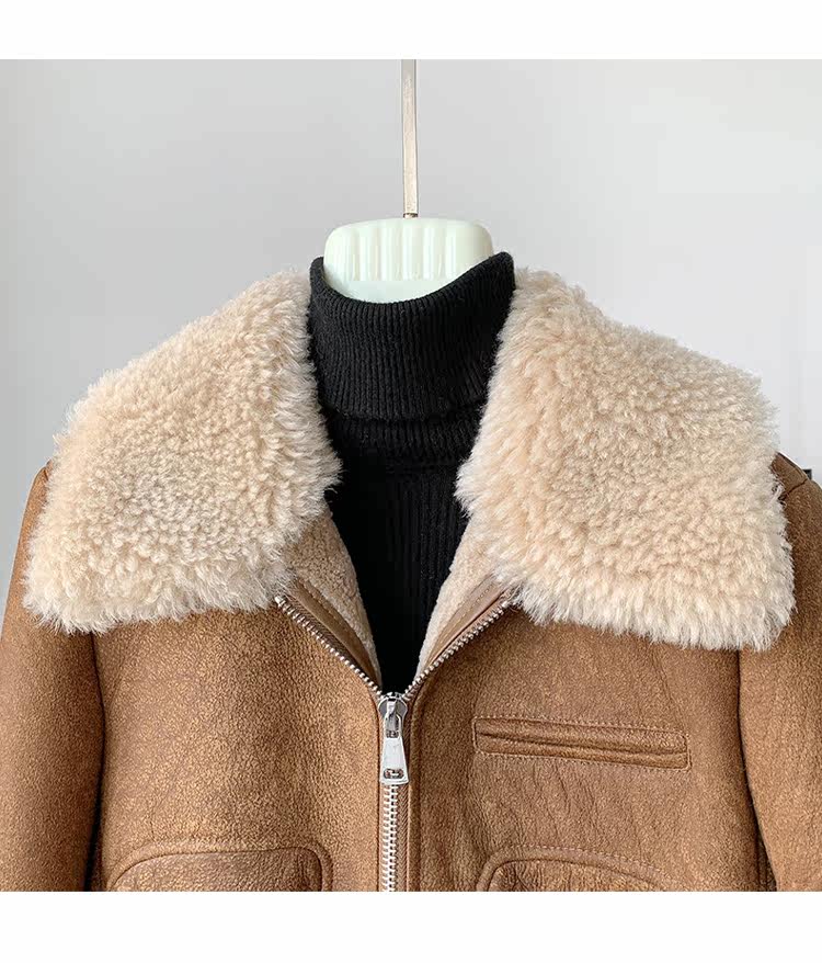 Новинка 2023 года, универсальная женская куртка из исландского мехового воротника из мериносового ягненка с коротким мехом, винтажный полированный цвет