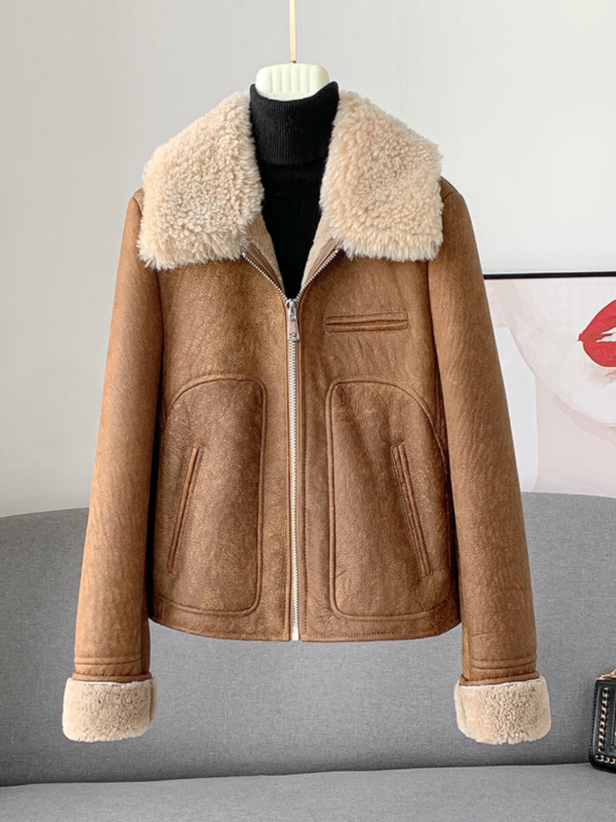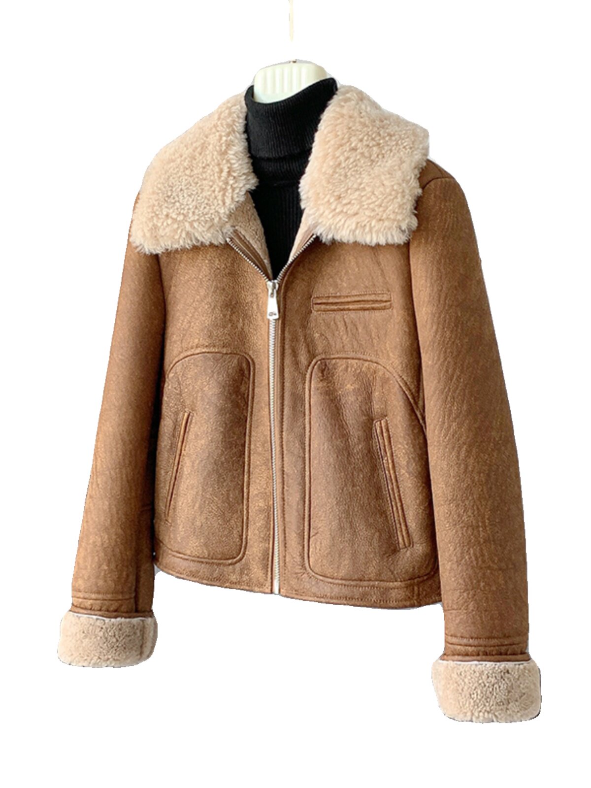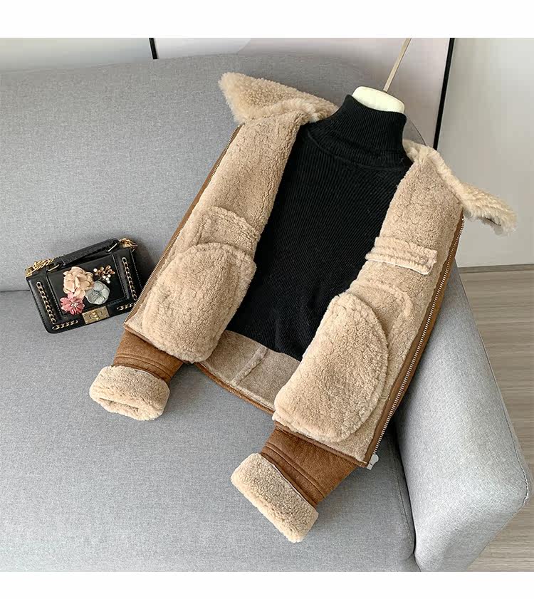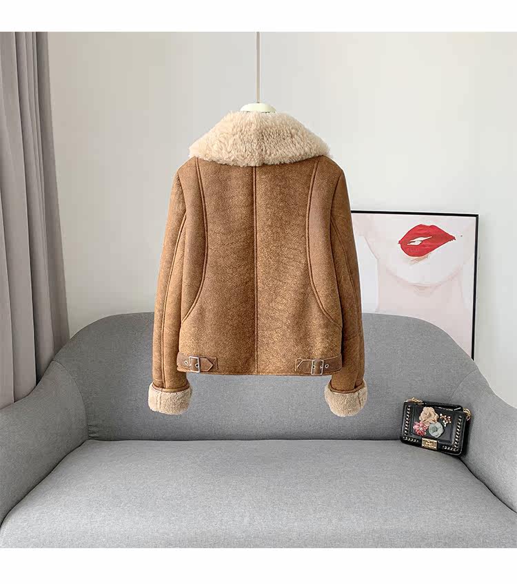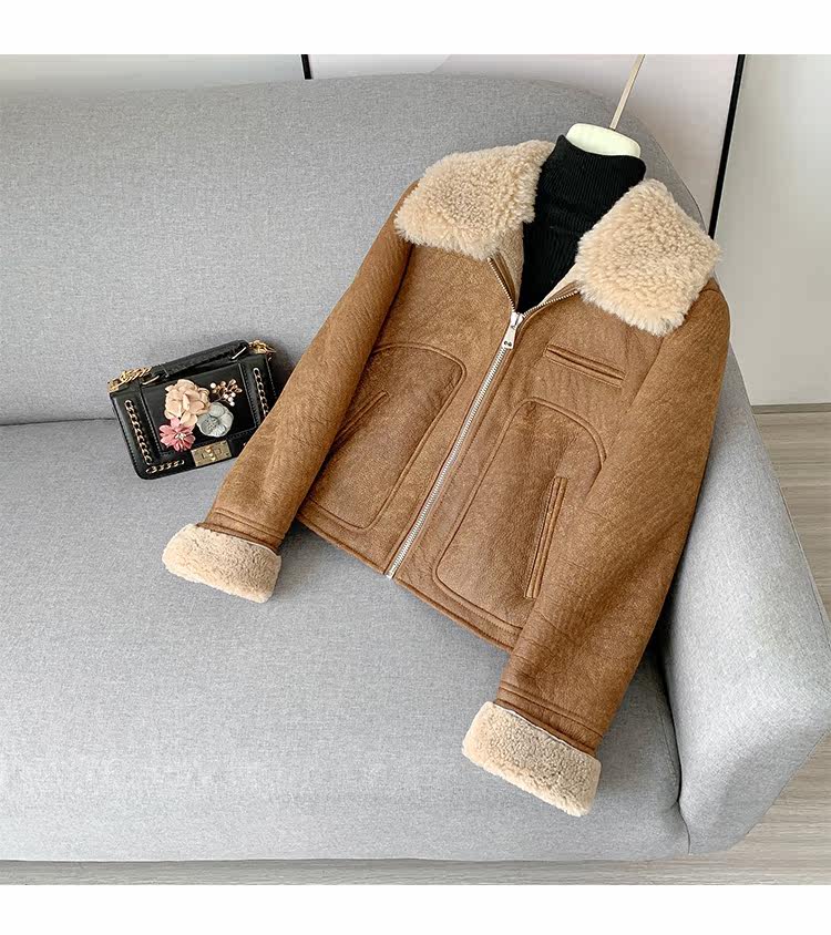 Новинка 2023 года, универсальная женская куртка из исландского мехового воротника из мериносового ягненка с коротким мехом, винтажный полированный цвет