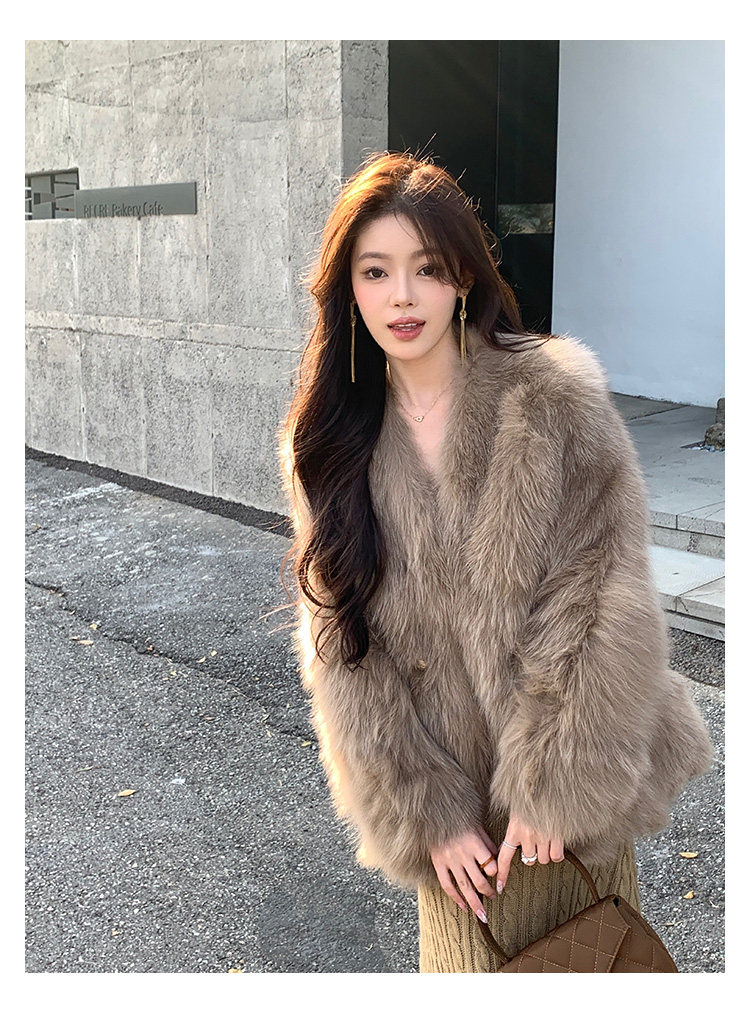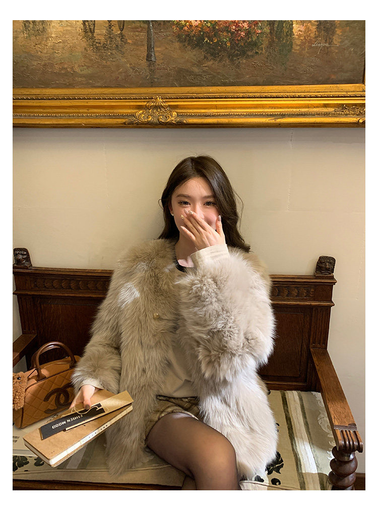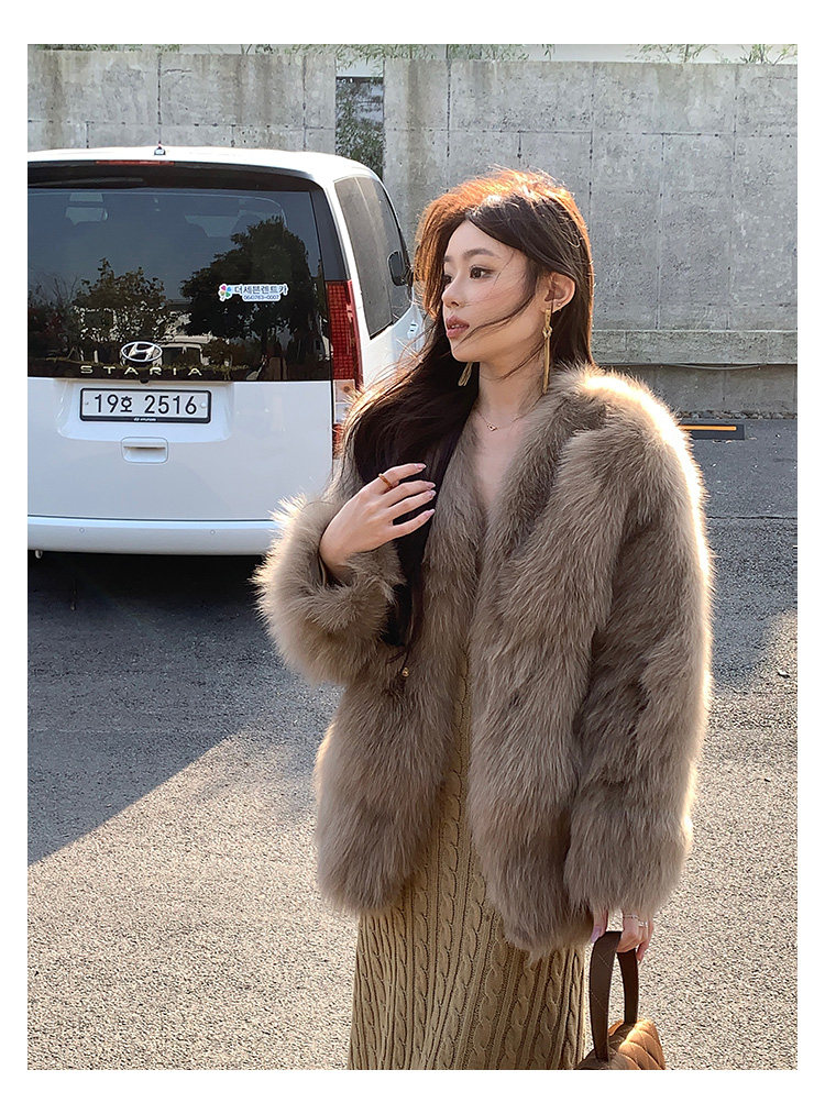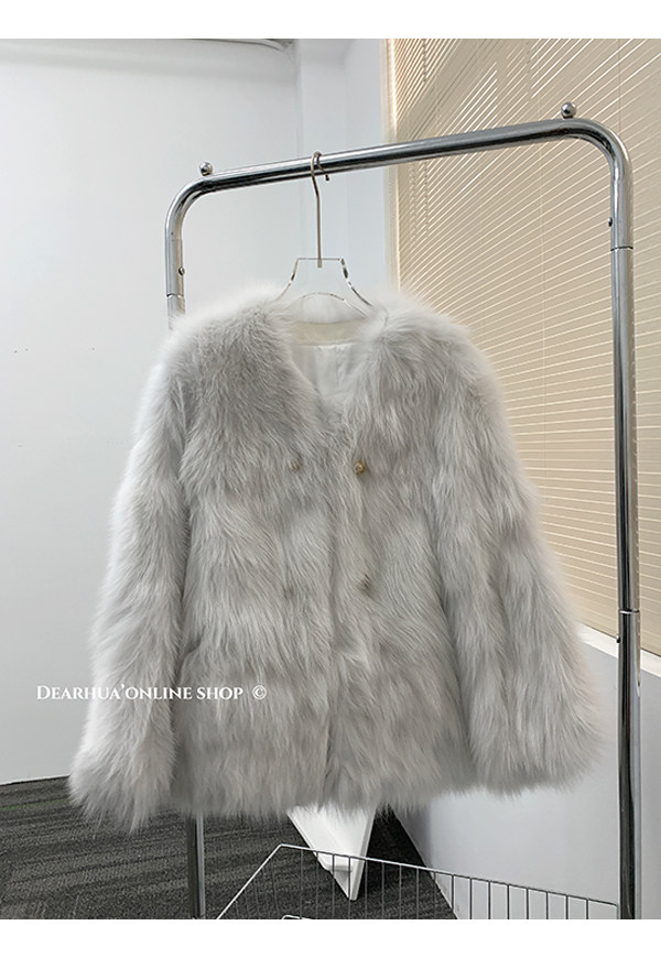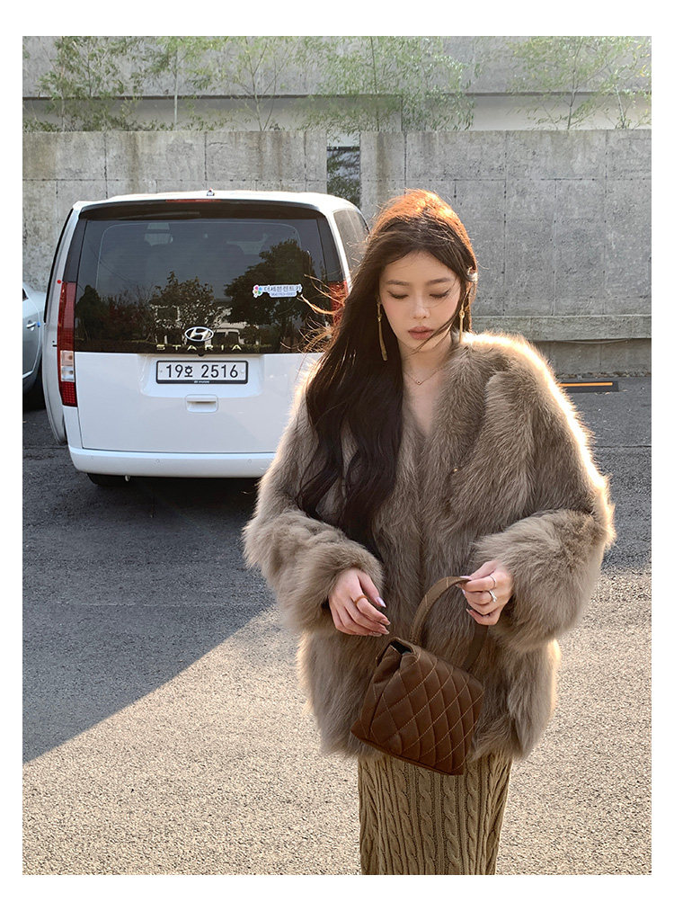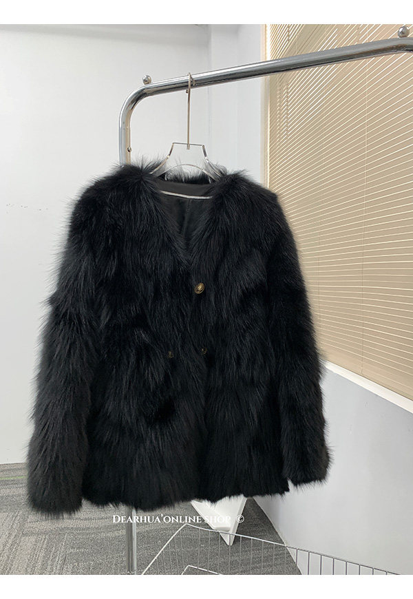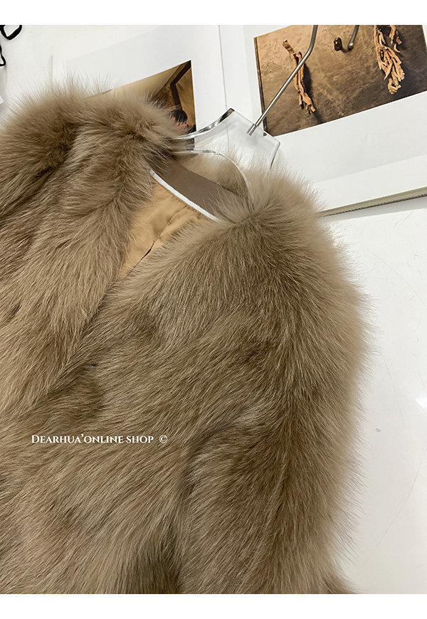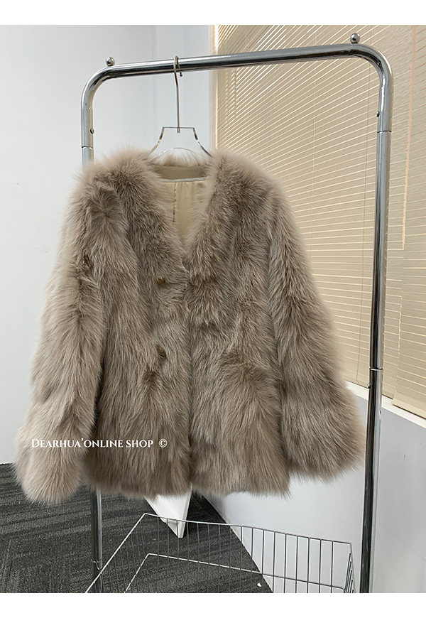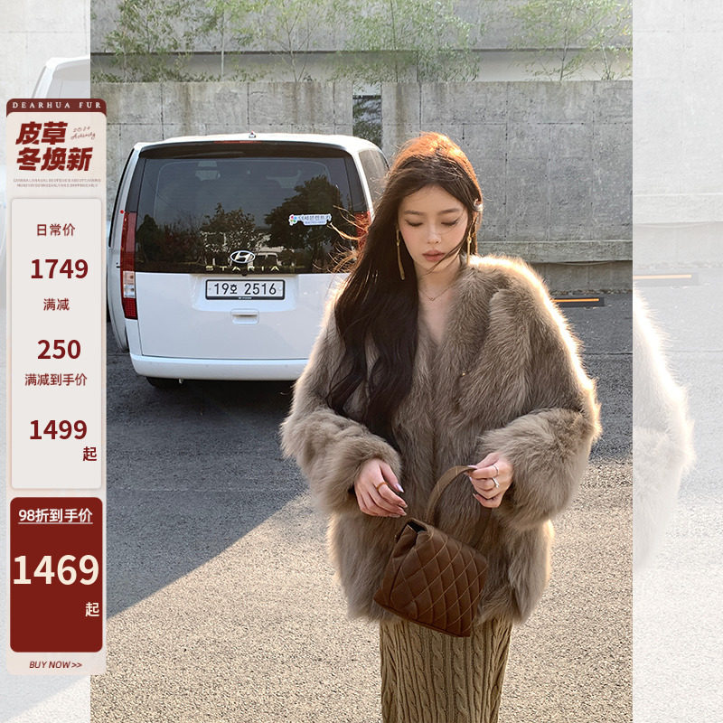 Dearhua Xiaohua 'Golden Bar Fox "импортировал волосы лисы тонкая v -neck кожаная травяная куртка женщина молодая новая