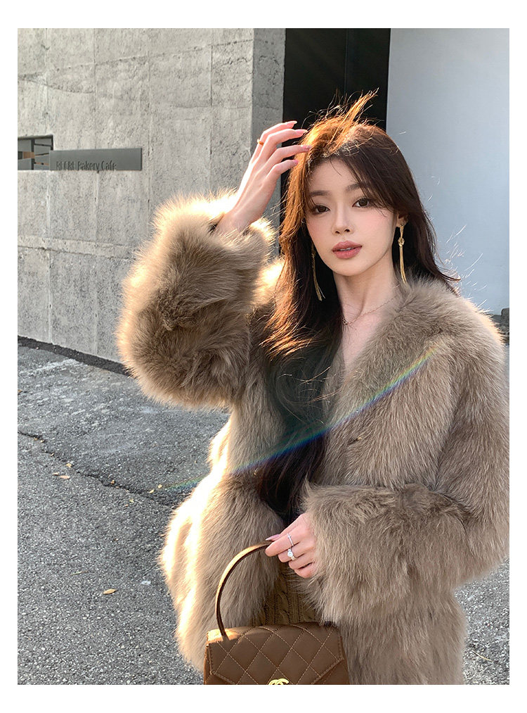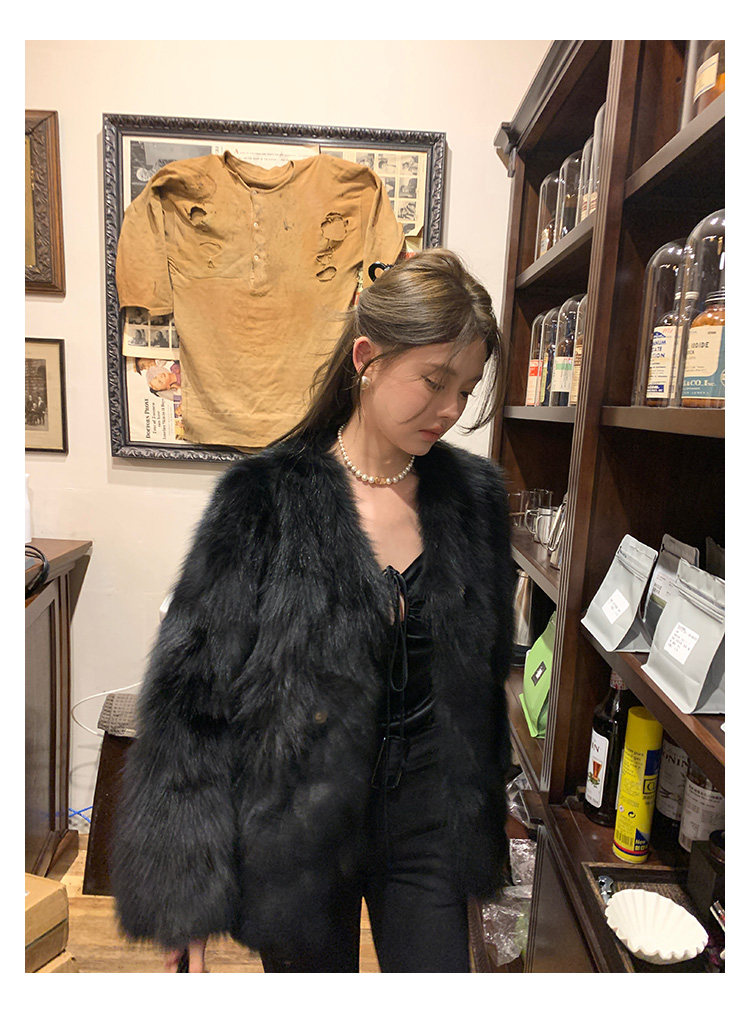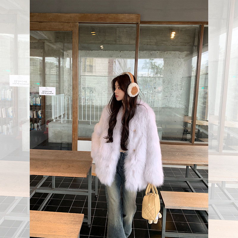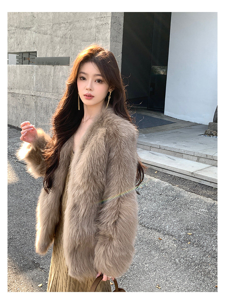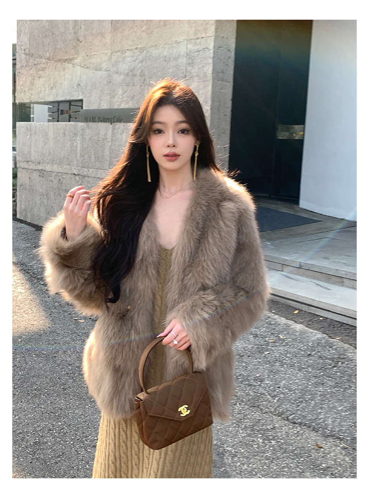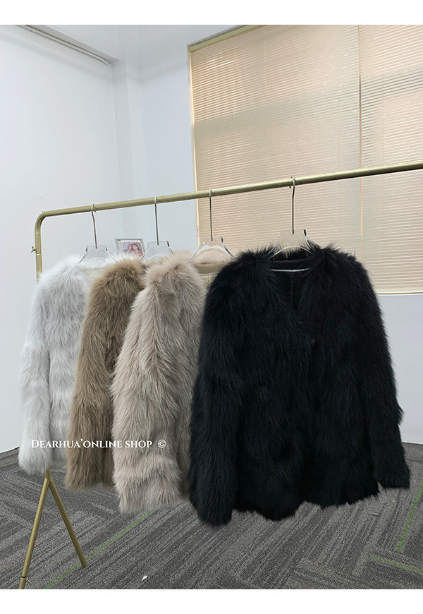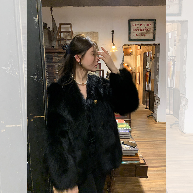 Dearhua Xiaohua 'Golden Bar Fox "импортировал волосы лисы тонкая v -neck кожаная травяная куртка женщина молодая новая