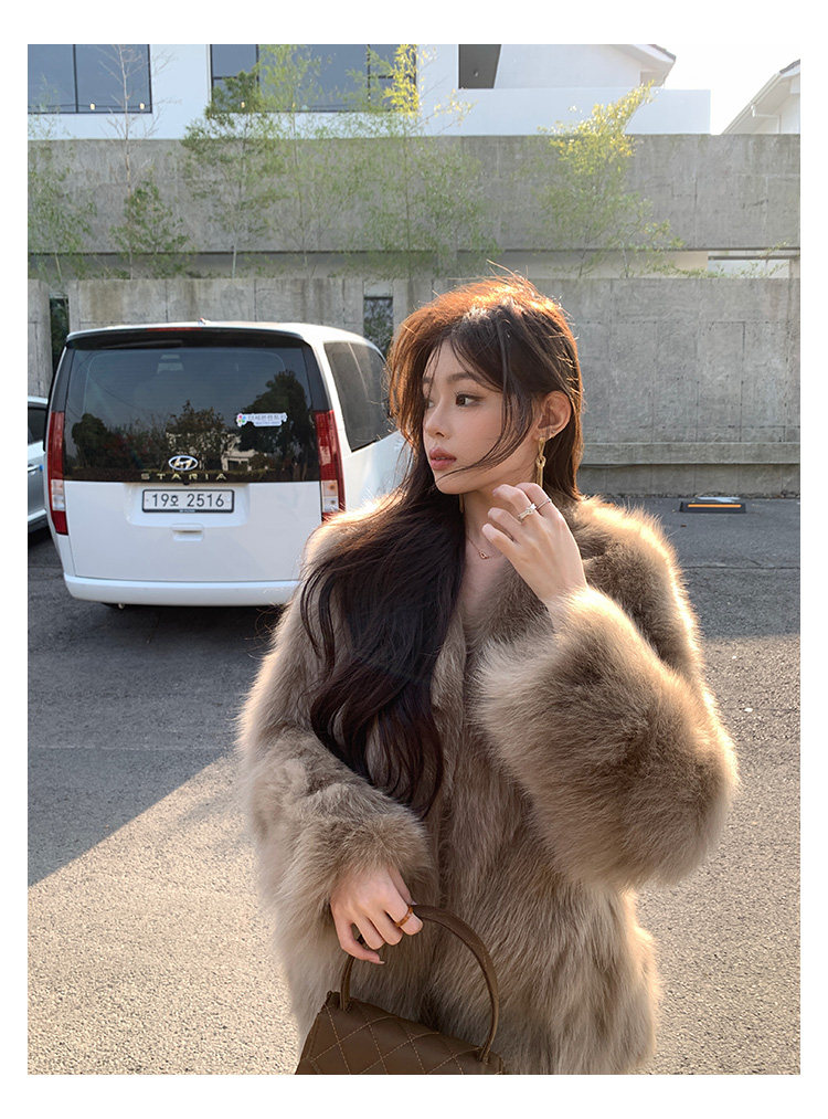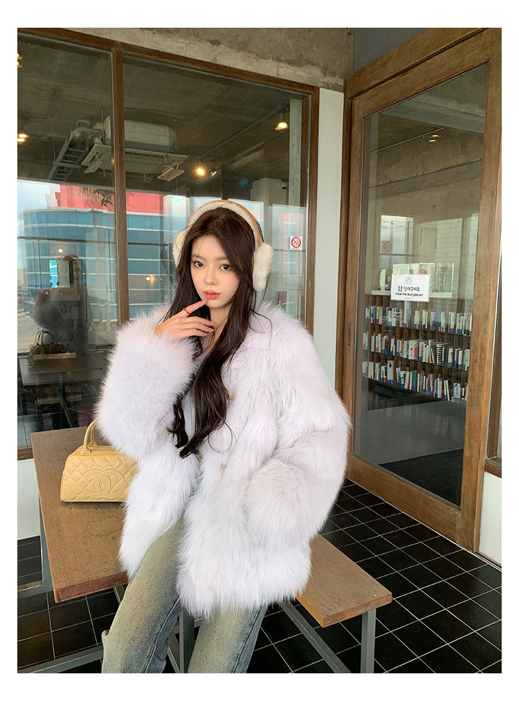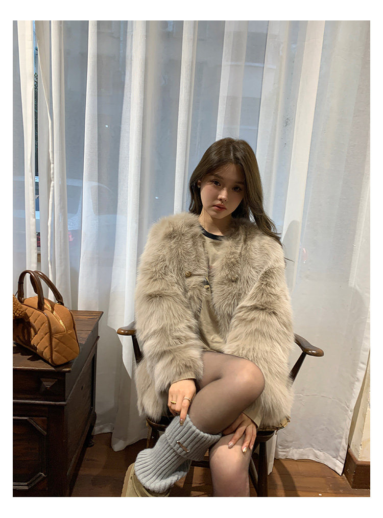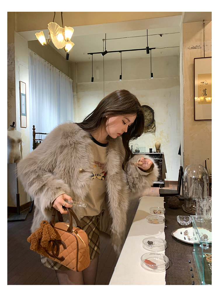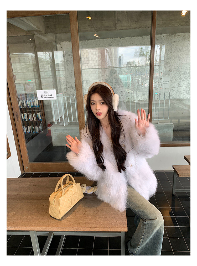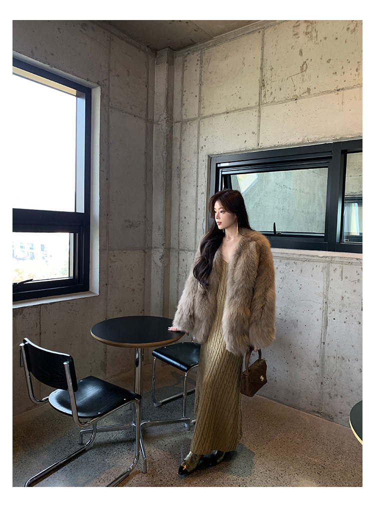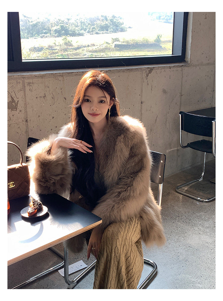 Dearhua Xiaohua 'Golden Bar Fox "импортировал волосы лисы тонкая v -neck кожаная травяная куртка женщина молодая новая