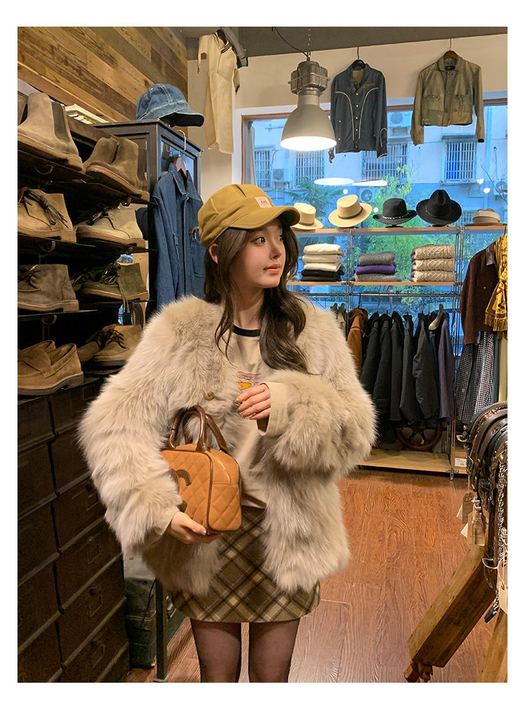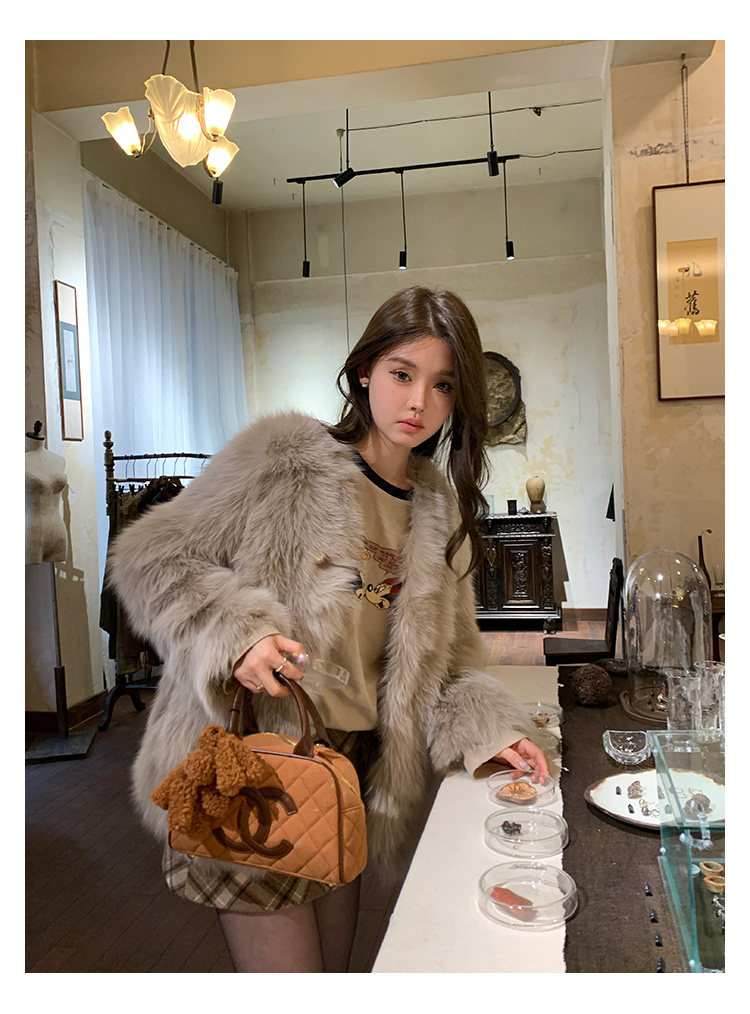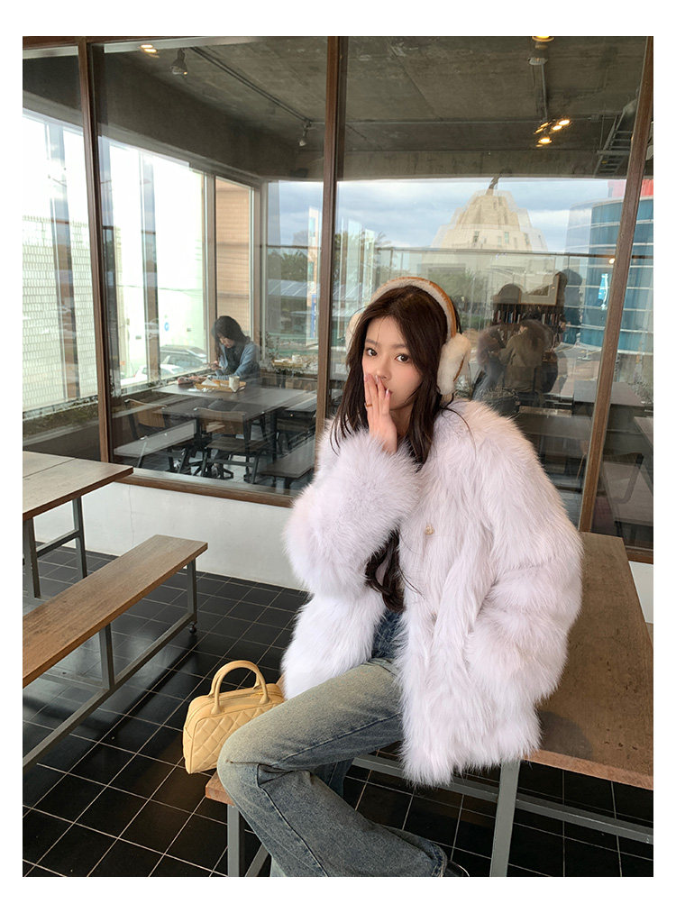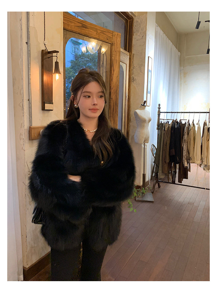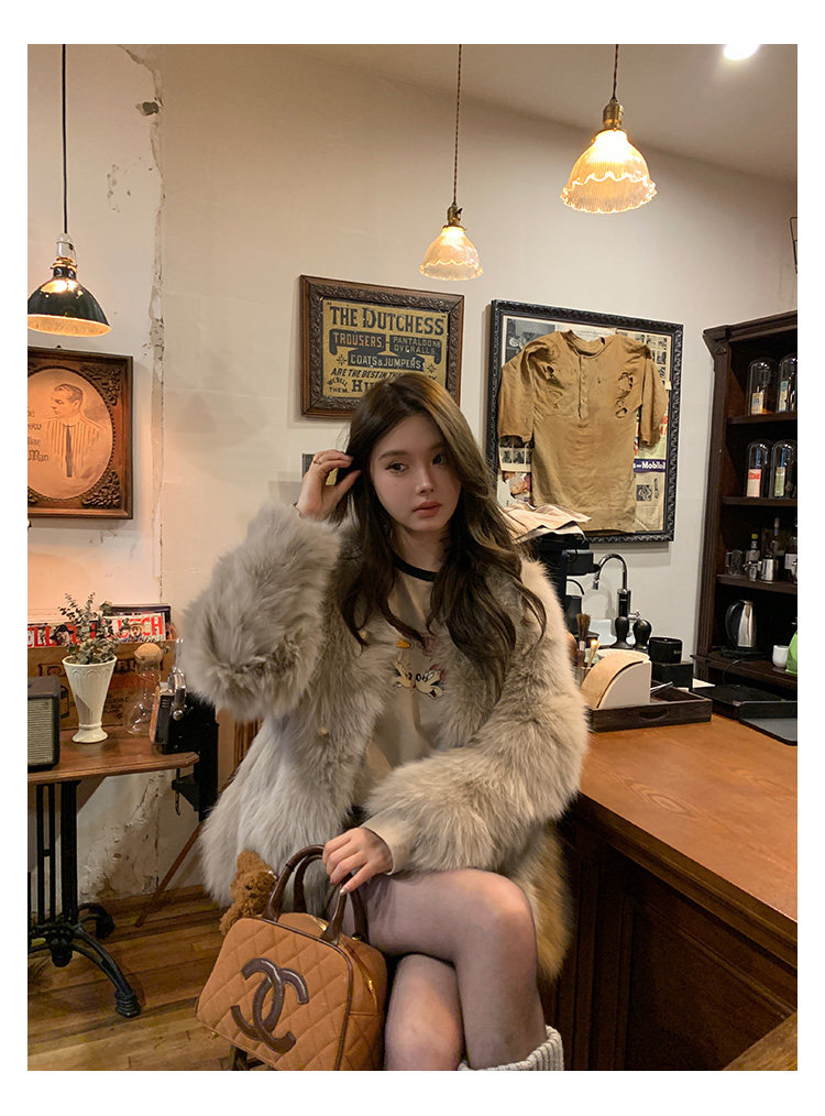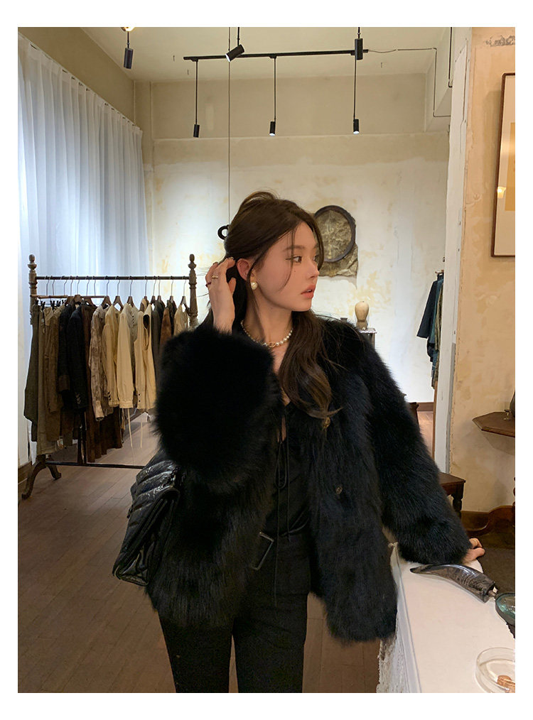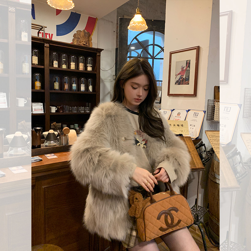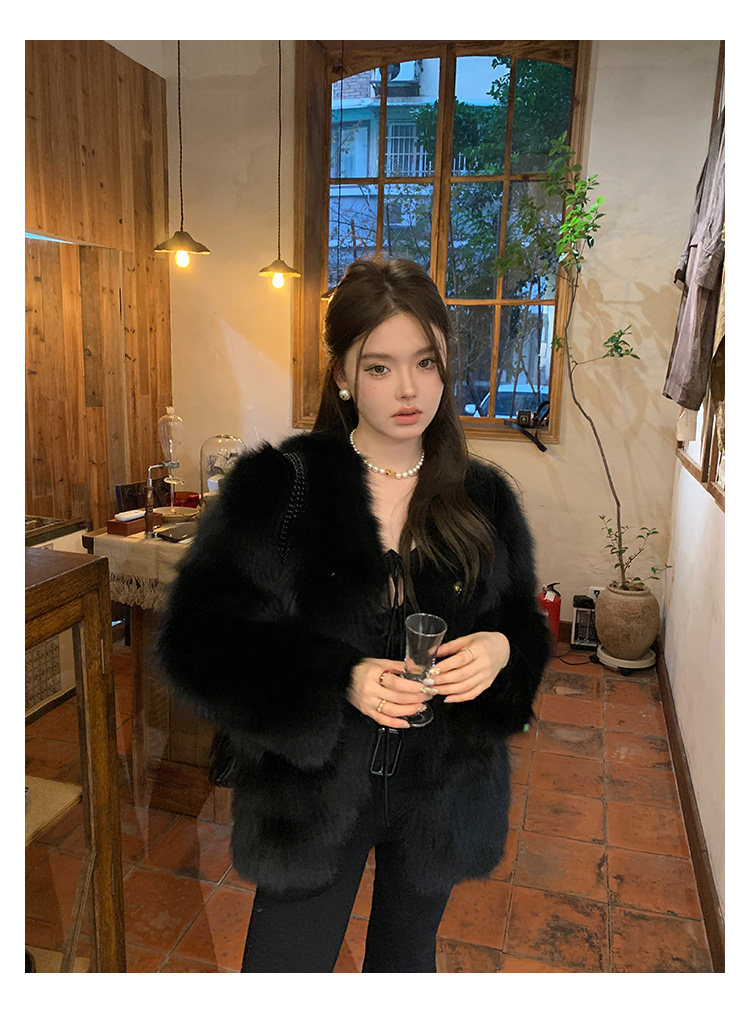Dearhua Xiaohua 'Golden Bar Fox "импортировал волосы лисы тонкая v -neck кожаная травяная куртка женщина молодая новая