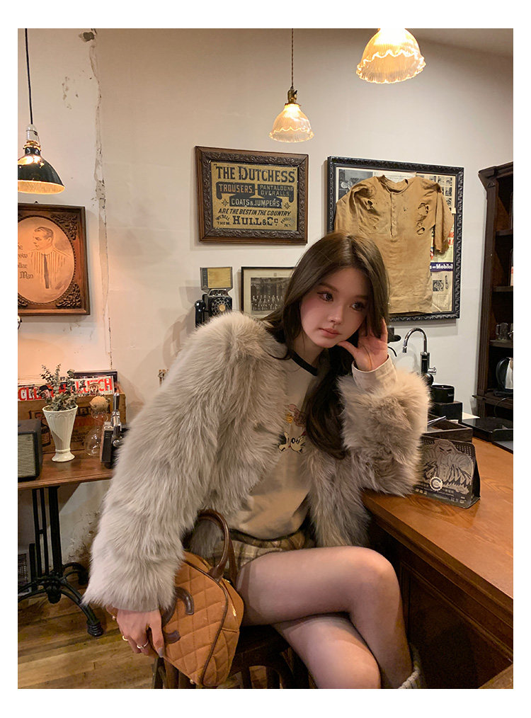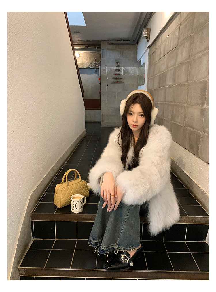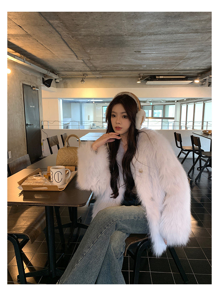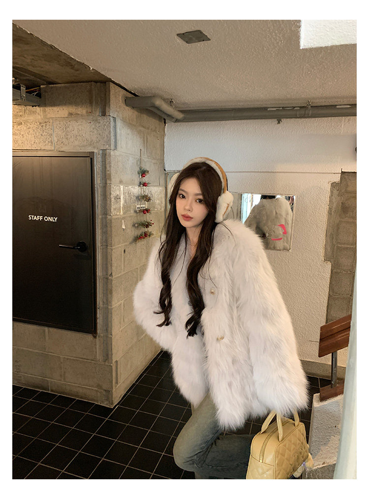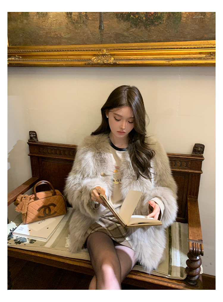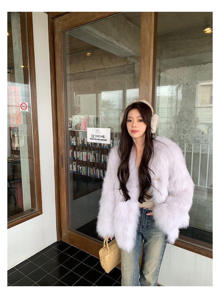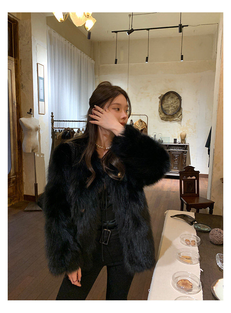 Dearhua Xiaohua 'Golden Bar Fox "импортировал волосы лисы тонкая v -neck кожаная травяная куртка женщина молодая новая