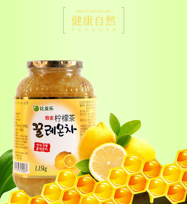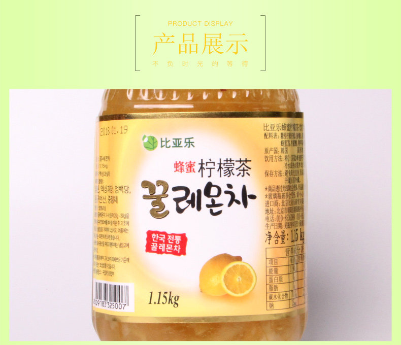 比亚乐 Медовый лимонный чай 1150G Корейский импортный грейпфрутовый чай серии медовый конденсированный фруктовый соус аромат аромат чай
