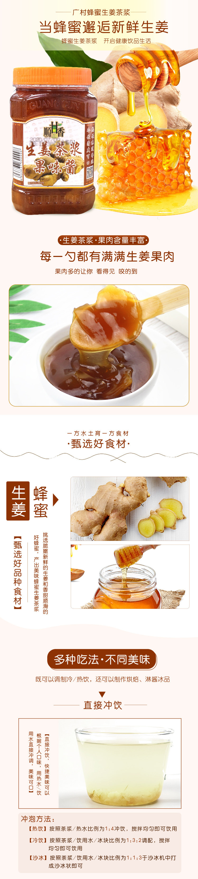 广村 Мякоть меда, имбирного чая, 1 кг, фруктовая мякоть, чайная мякоть, напиток, цветок, фруктовый чай, варенье, коммерческий магазин чая с молоком, сырье
