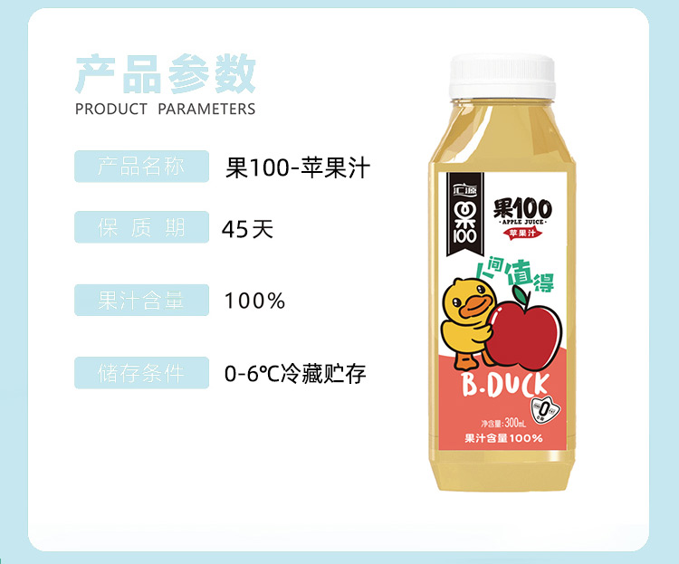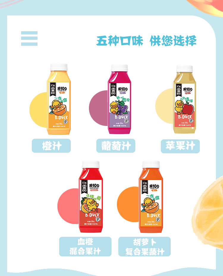 汇源 Фрукты 100 квадратных метров фруктового сока, утка утенка, 300 мл*8 бутылок напитков.