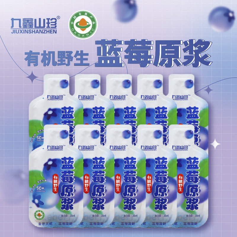 九鑫山珍 Черничный сок органический дикий черничный пульпа 100% черничный сок без добавок 30 мл*10 мешков