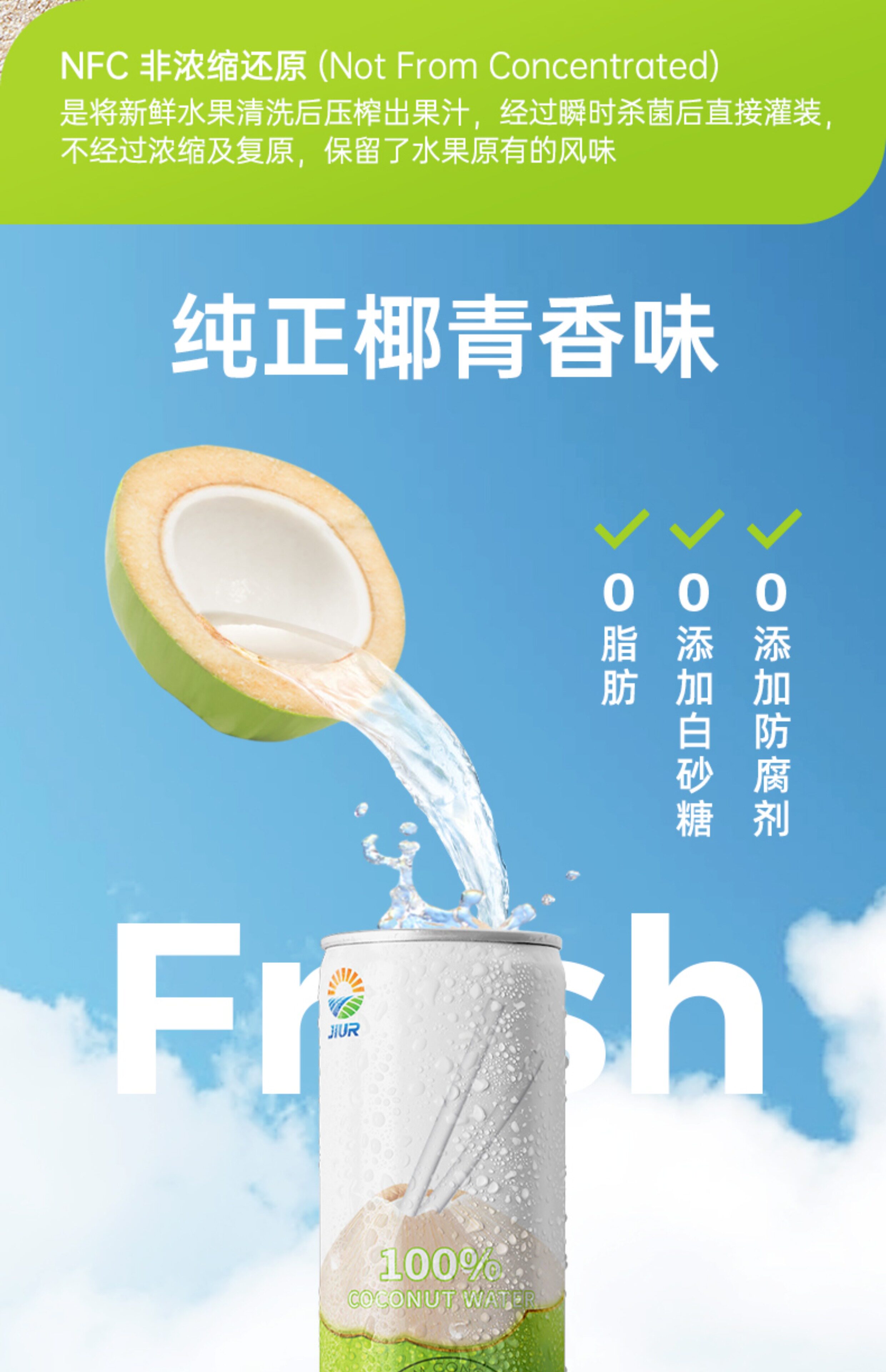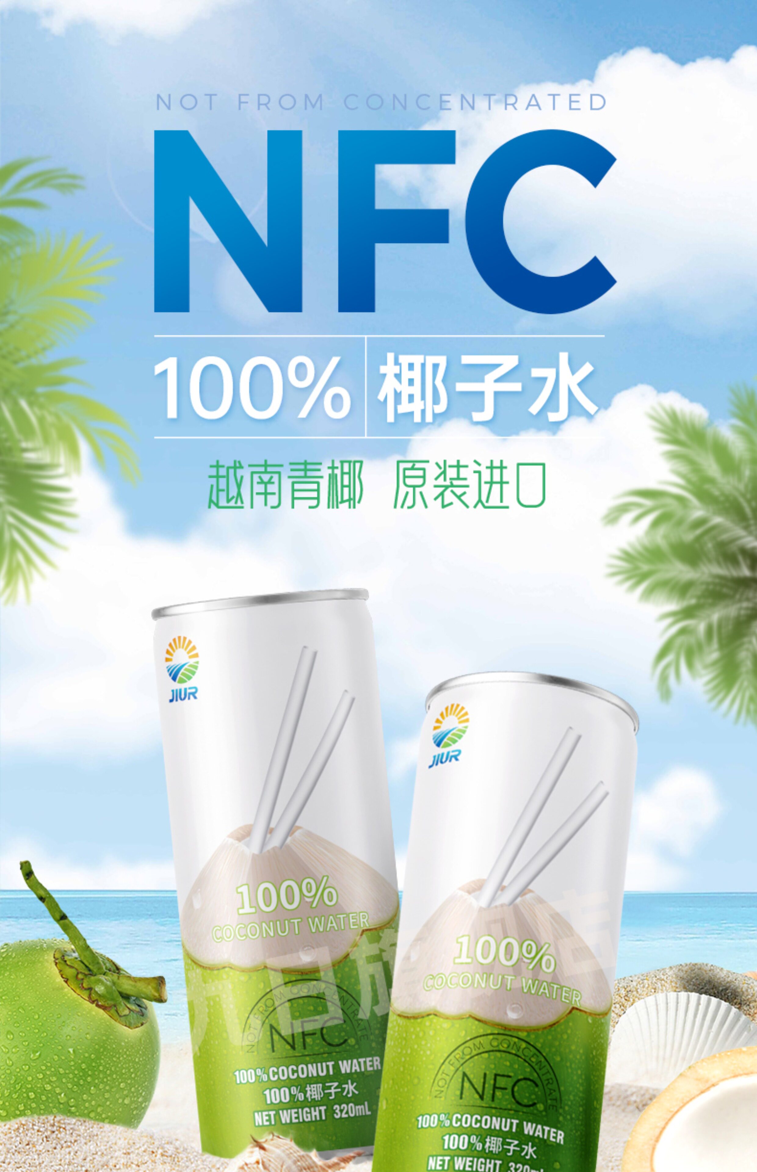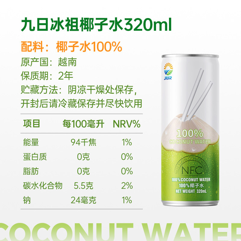 九日 100% NFC Кокосовая вода 320 мл*6 банок вьетнама импортируемого кокосового зеленого сока Кокосовое сок добавка электролита