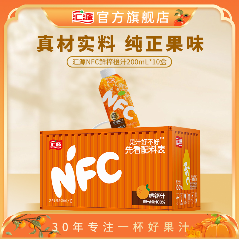 汇源 100% сок NFC свежес сжатый апельсиновый сок 200 мл*10 новогодний подарочный напиток сок. Новая подарочная коробка.