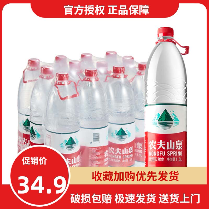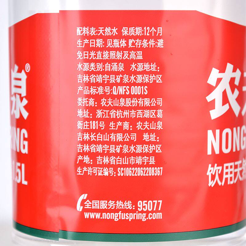 Nongfu Mountain Spring Натуральная питьевая вода 1,5 л × 12 бокса в боксе с полной щелочной минеральной пластиковой упаковкой не -кодов упаковки