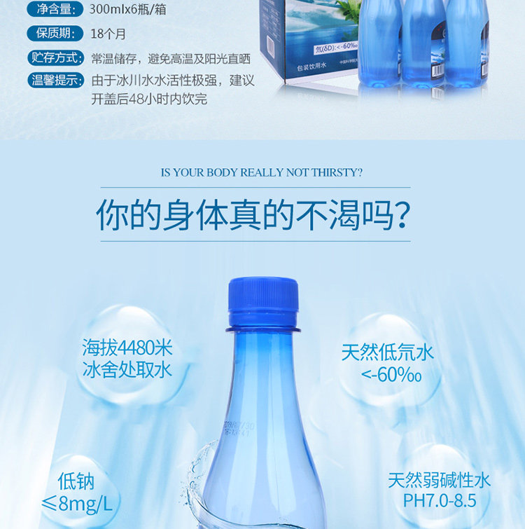 Синьцзян Тяньшан Грацелитный ледник вода 300 мл и время; 6 бутылок/целая коробка с низкой водой.