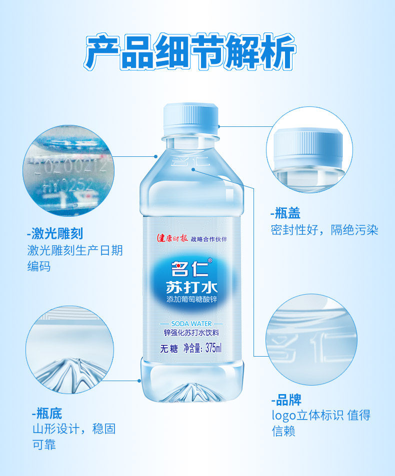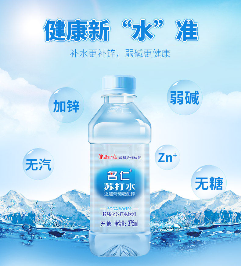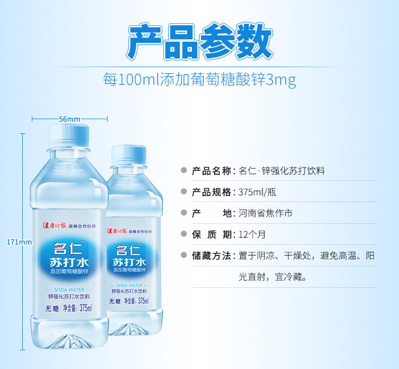 名仁 Сода вода напитки Слабая щелочная минеральная пружина питьевая вода 375 мл × 24 бутылки цинковой содовой воды