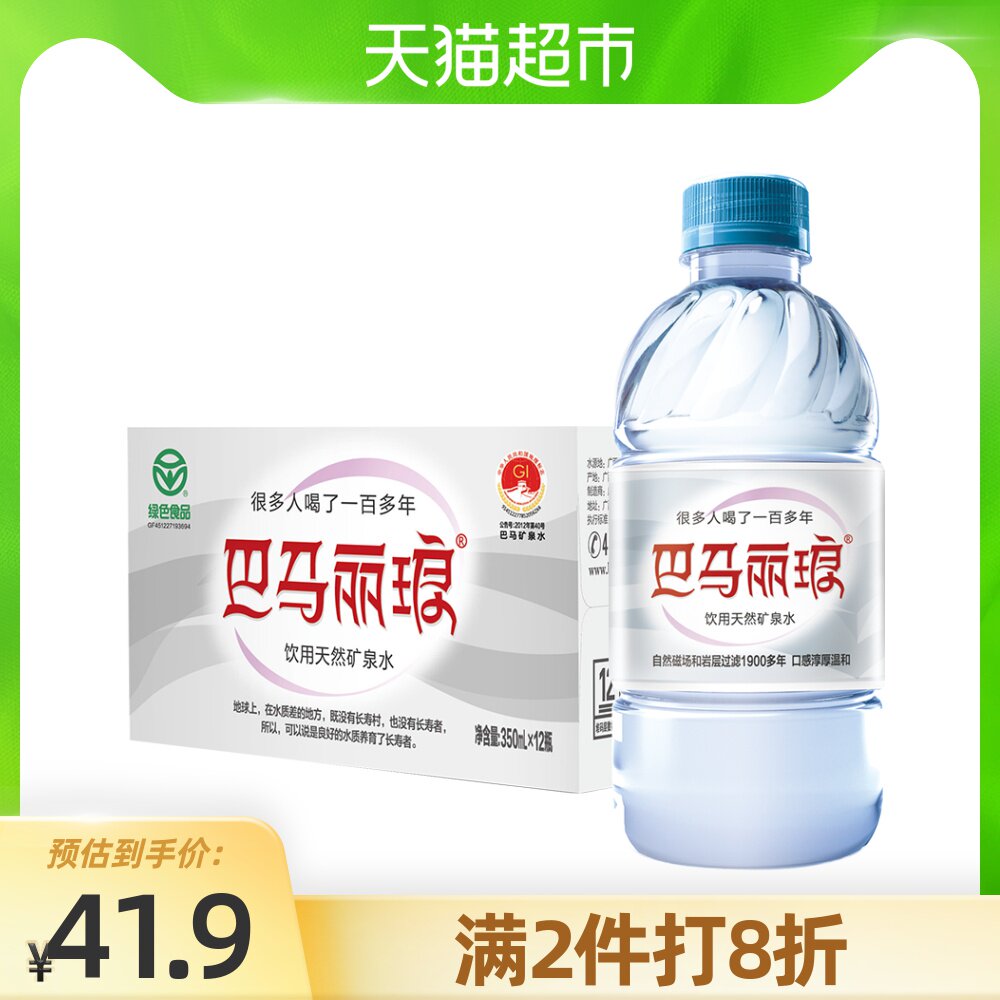 巴马丽琅 Натуральная минеральная вода 350 млх12 бутылка слабой щелочной конференции минеральной воды Панма, чтобы установить питьевую воду