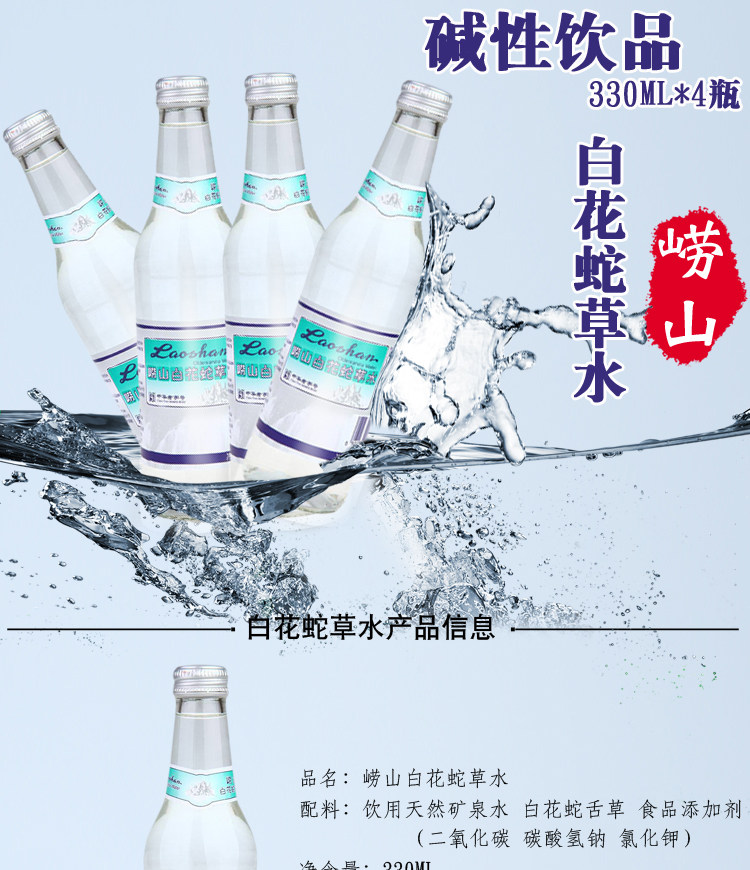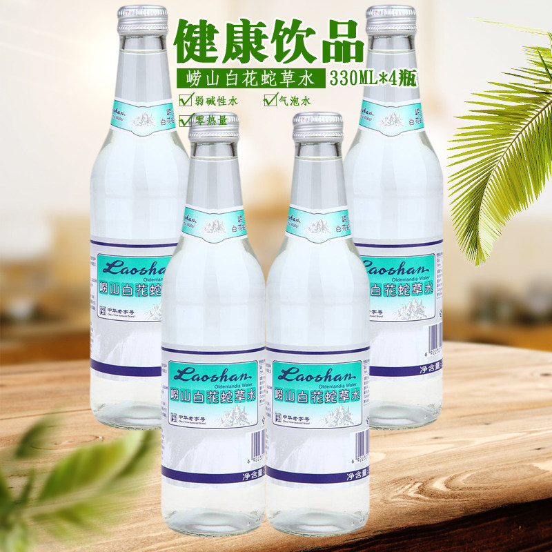 Laoshan Baihua Snake Grass Water 330 мл*4 бутылки из бесплатной доставки стеклянная бутылка Священная вода белые цветы и змея вода Трудно пить с сетью красного напитка