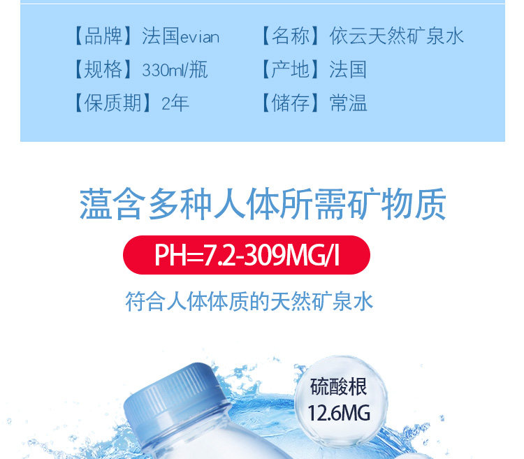 Оригинальная импортная минеральная вода Evian Evian 330 мл*24 бутылка Evian слабо щелочная питьевая вода