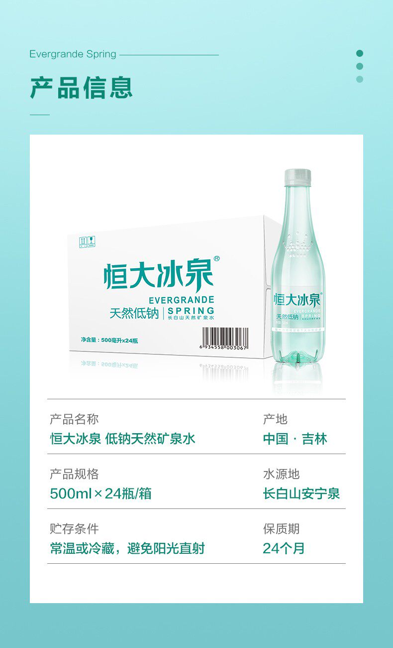Evergrande Bingquan Low Long Long Baishan Home Natural Mineral Water 500mlx24 Бутылка пластиковая кассовая конференция