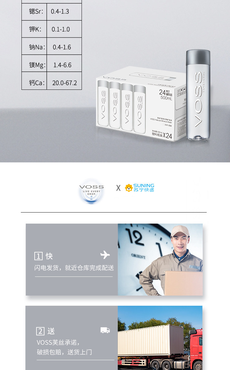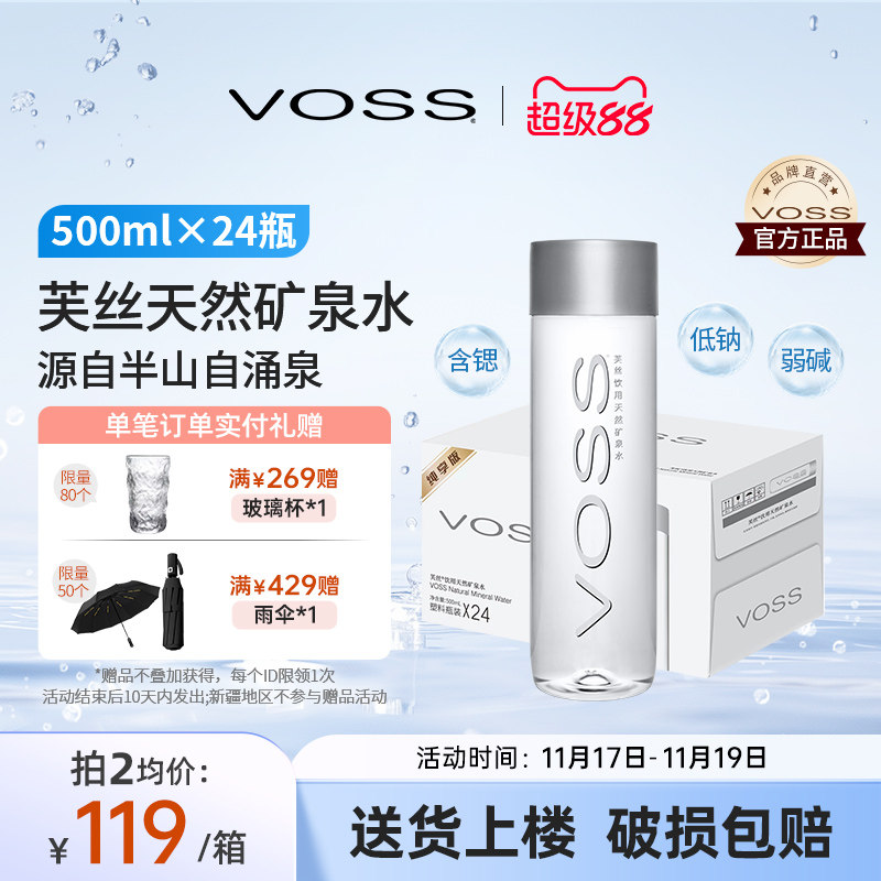 Voss Fuss Натуральная минеральная вода слабая щелочная вода Высококачественная питьевая вода 500 мл*24 бутылки Бесплатная доставка для цельной коробки