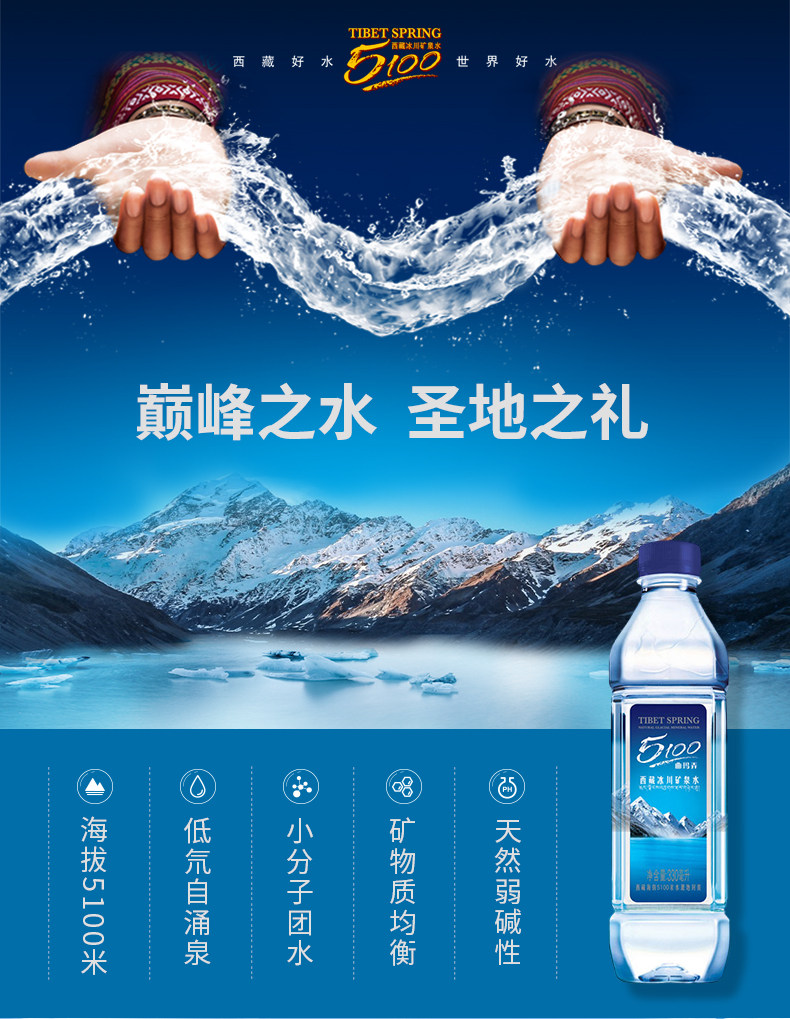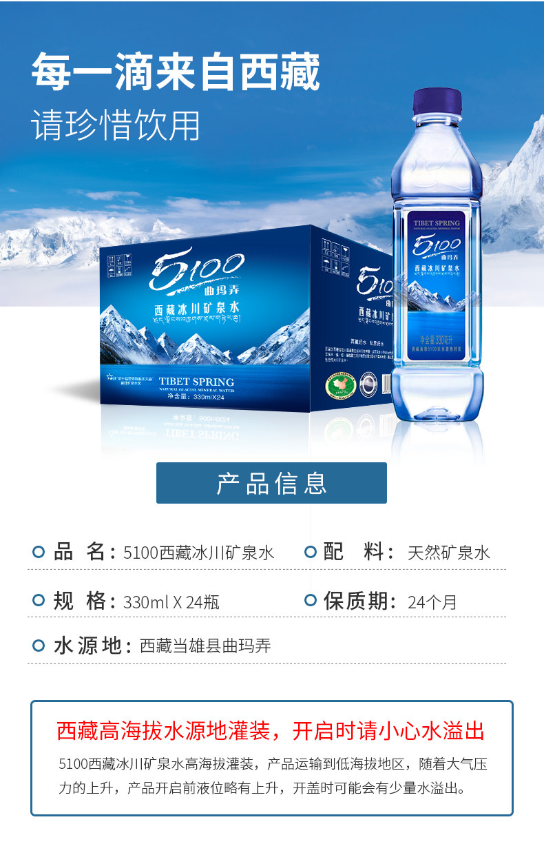 5100 Тибетская природная ледниковая минеральная вода, 330 мл x 24 бутылки/футляр, слабощелочная вода