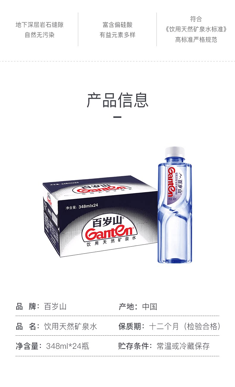 Столетняя гора натуральная минеральная вода 348 мл*24 бутылки из цельной коробки Небольшая бутылка питьевая вода