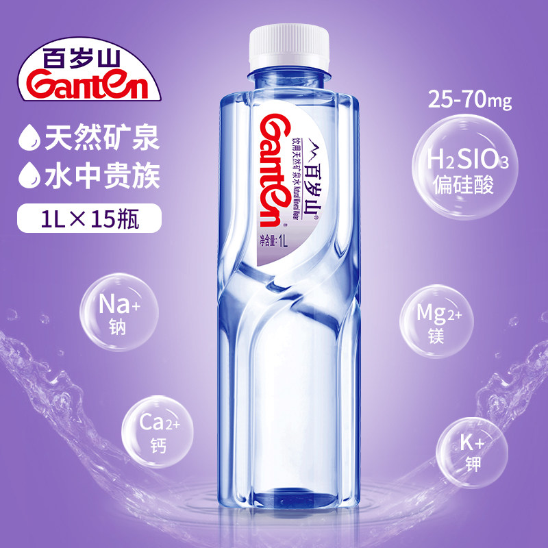 Столетняя гора натуральная минеральная вода 1 л*15 бутылок. Коробка с бутылкой для питьевой воды богата силиконической кислотой естественное здоровье