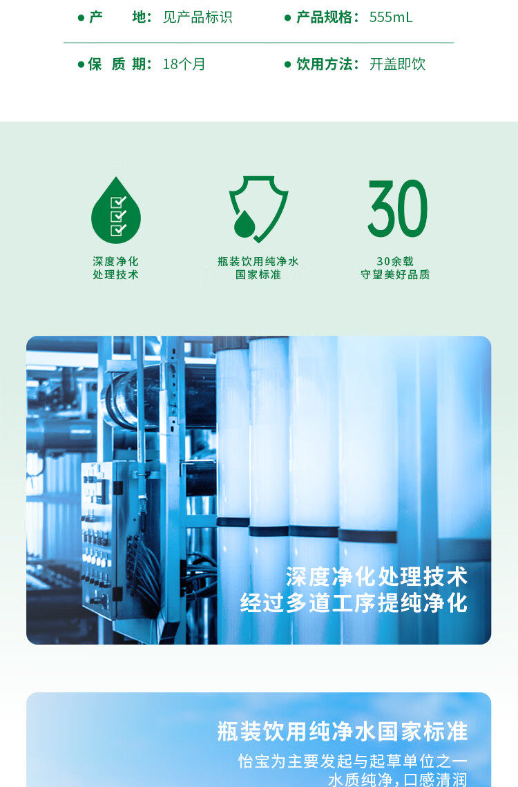 [Новая дата] Yibao Pure Water 555ml*24 Бутылки не -минеральной воды Полная коробка Поддержка