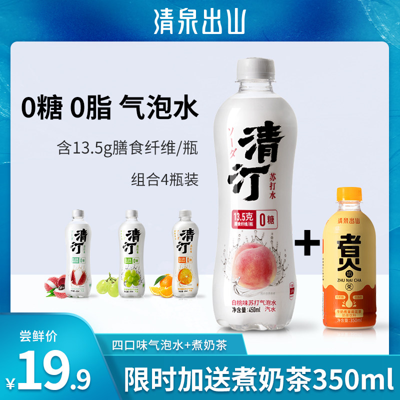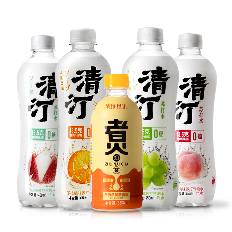 清泉出山 Qing Ting 0 сахар 0 Содаг -вода опубликованная вода 4 бутылка белого персикового синего напитка Litchi+приготовление чая для приготовления молока