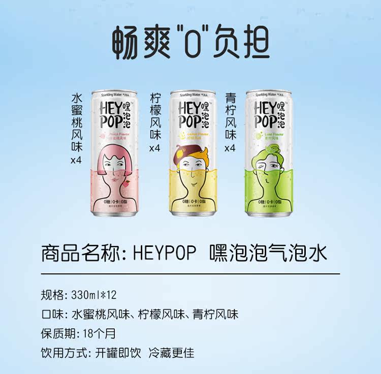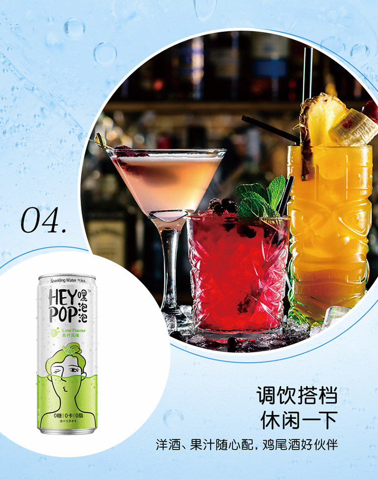 HeyPop/Hey Bubble 0 сахар 0 карта 0 Qi пузырьковые напитки с лимоном со вкусом лайма персич 330 мл*12 банка