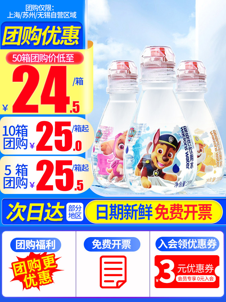 Watsons питьевая вода 200 мл*12 бутылок детского стиля Wangwang Team Super Flight Random Free от чистой не -минеральной воды