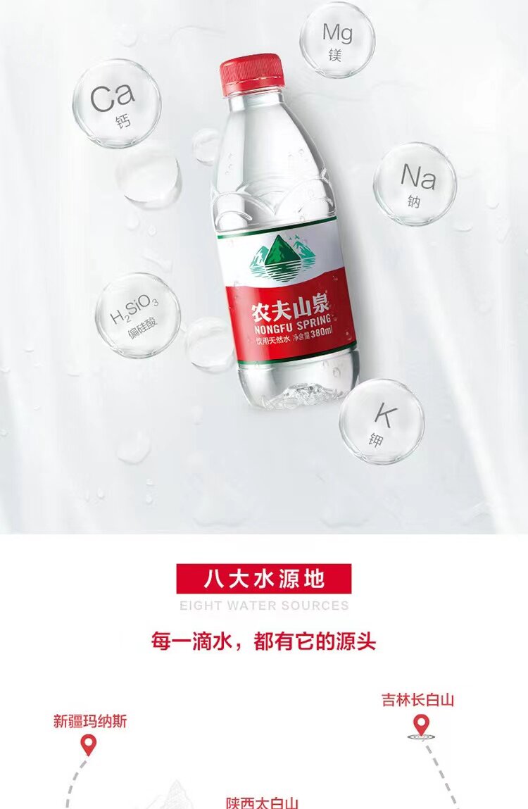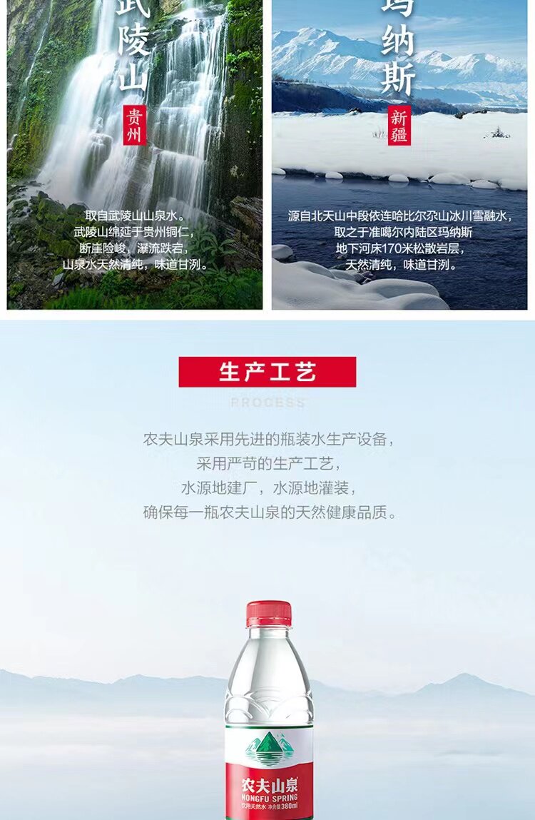 农夫山泉 Натуральная питьевая вода 380 мл 24 бутылки цельная коробка оптом не-минеральные бутылки с водой Специальные зазоры