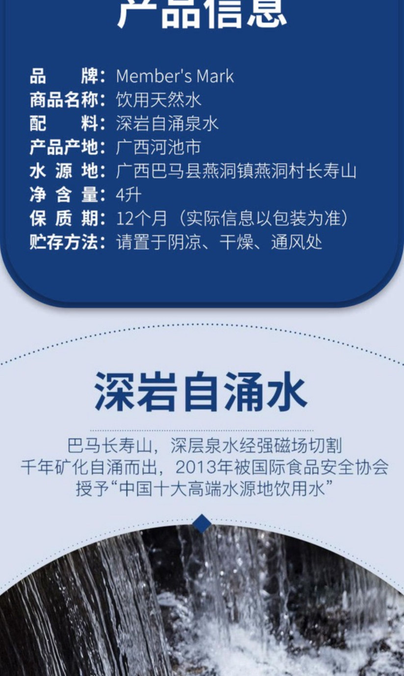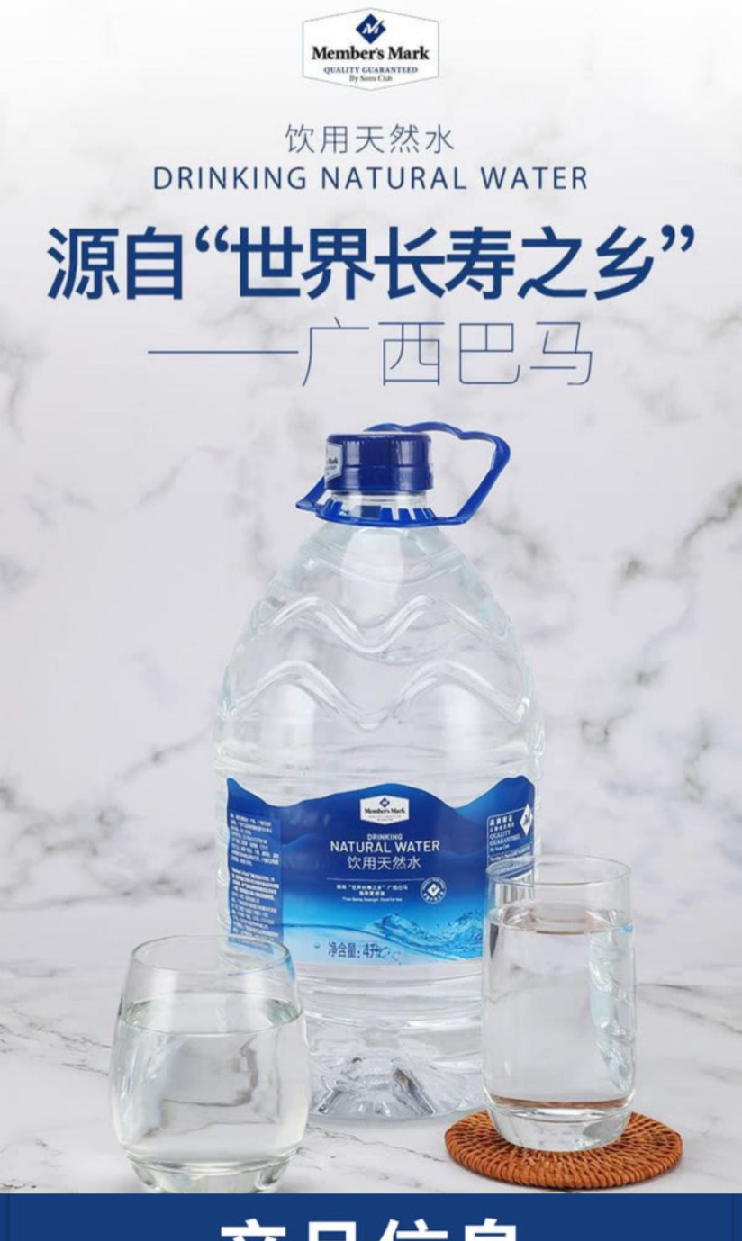 Сэм -член магазина супермаркета, слабый щелочный мэр округа Бама Шушан естественная минеральная питьевая вода 4 л. Семья Большой бочка