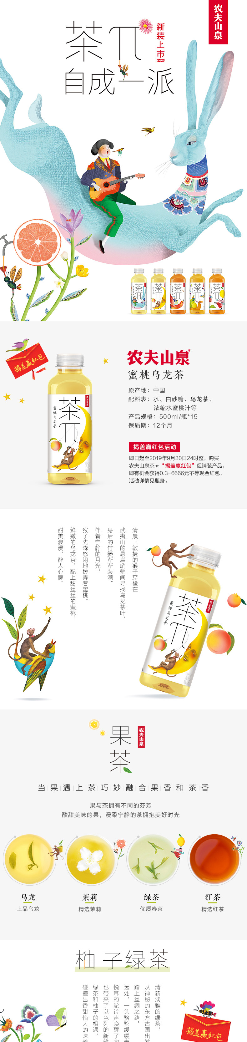 农夫山泉 Teawu Tea School 500 мл*15 бутылок с полной коробкой чай π чайный напиток персик персик 乌