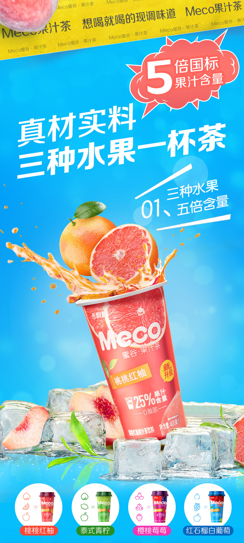 [Полная коробка пут] Meco Honey Valley · Сок -чайный напиток 0 Жирное персиковое персиковое персиковое красное Pomelo 400 мл8 чашка, напиток