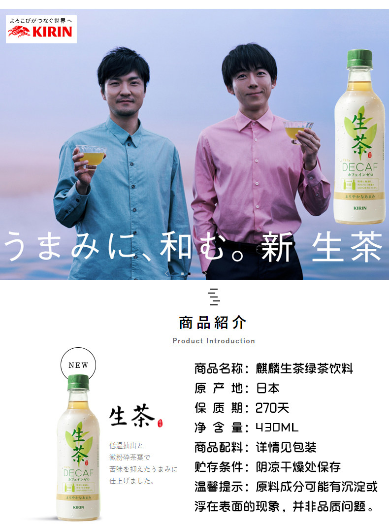 Японский импортный необработанный чай с кофеином, зеленый чай, 430 мл