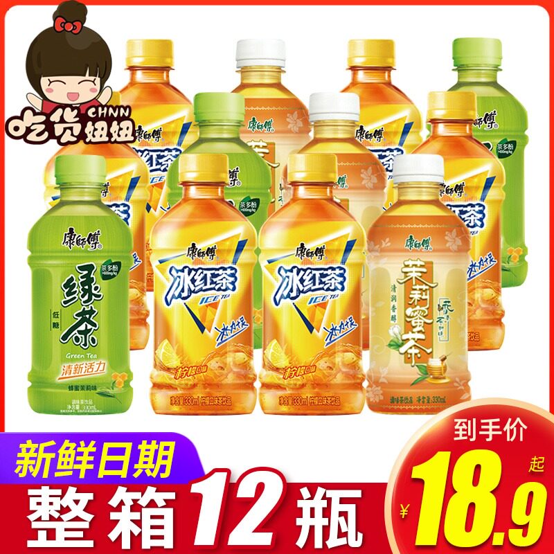 康师傅 Ice Black Tea Tea Rock Sugar Pomelo Peach Oolong 330 мл*12 бутылок напитков Летний напиток для воды оптом