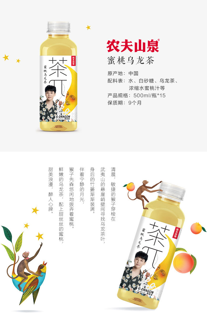 农夫山泉 ЧайπЧаепитие Quan Zhilong индивидуальный пакетированный чайный напиток 500 мл * 15 количество бутылок с аватаром случайное