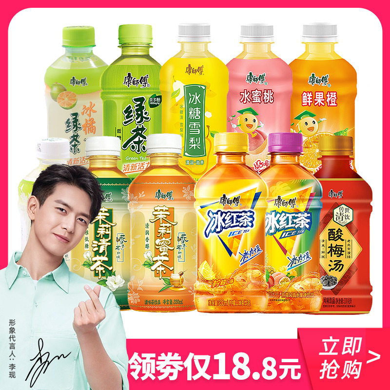 康师傅 Ледовый черный чай 330 мл мини -бутылка напитки зеленый чай Жасмин прозрачный медовый чай Комбинированная коробка