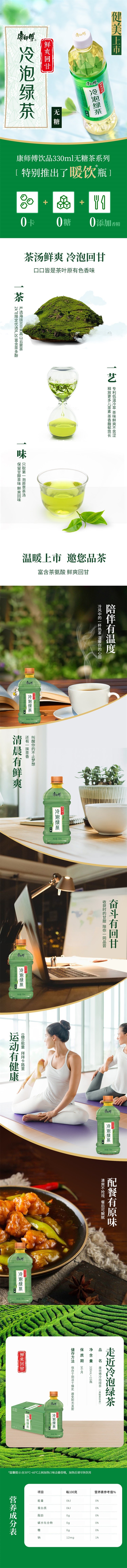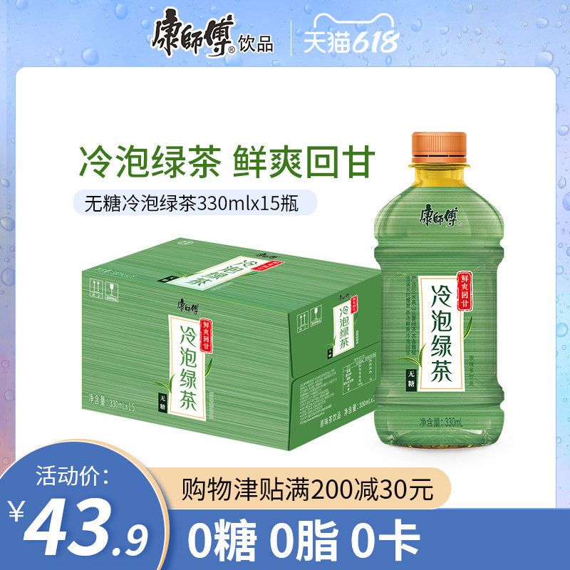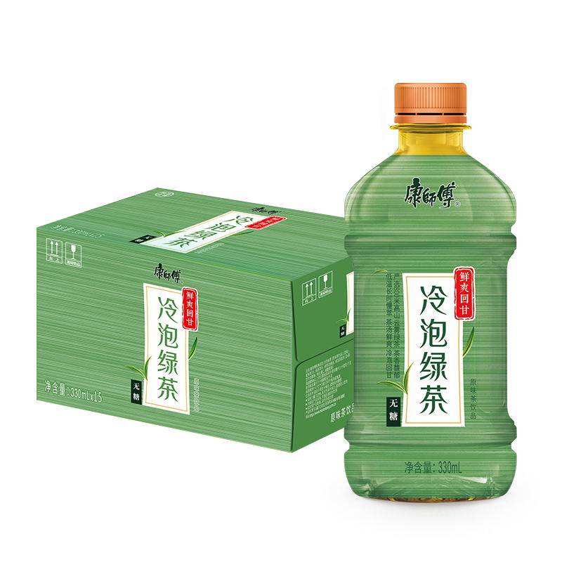 康师傅 Напиток сахар -Бесплатный холодный пузырь зеленый чай Оригинальный напиток 0 Жирный 0 Карта 330MLX15 Бутылка полная коробка