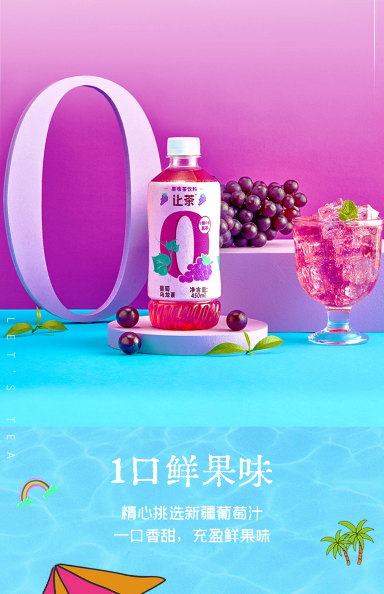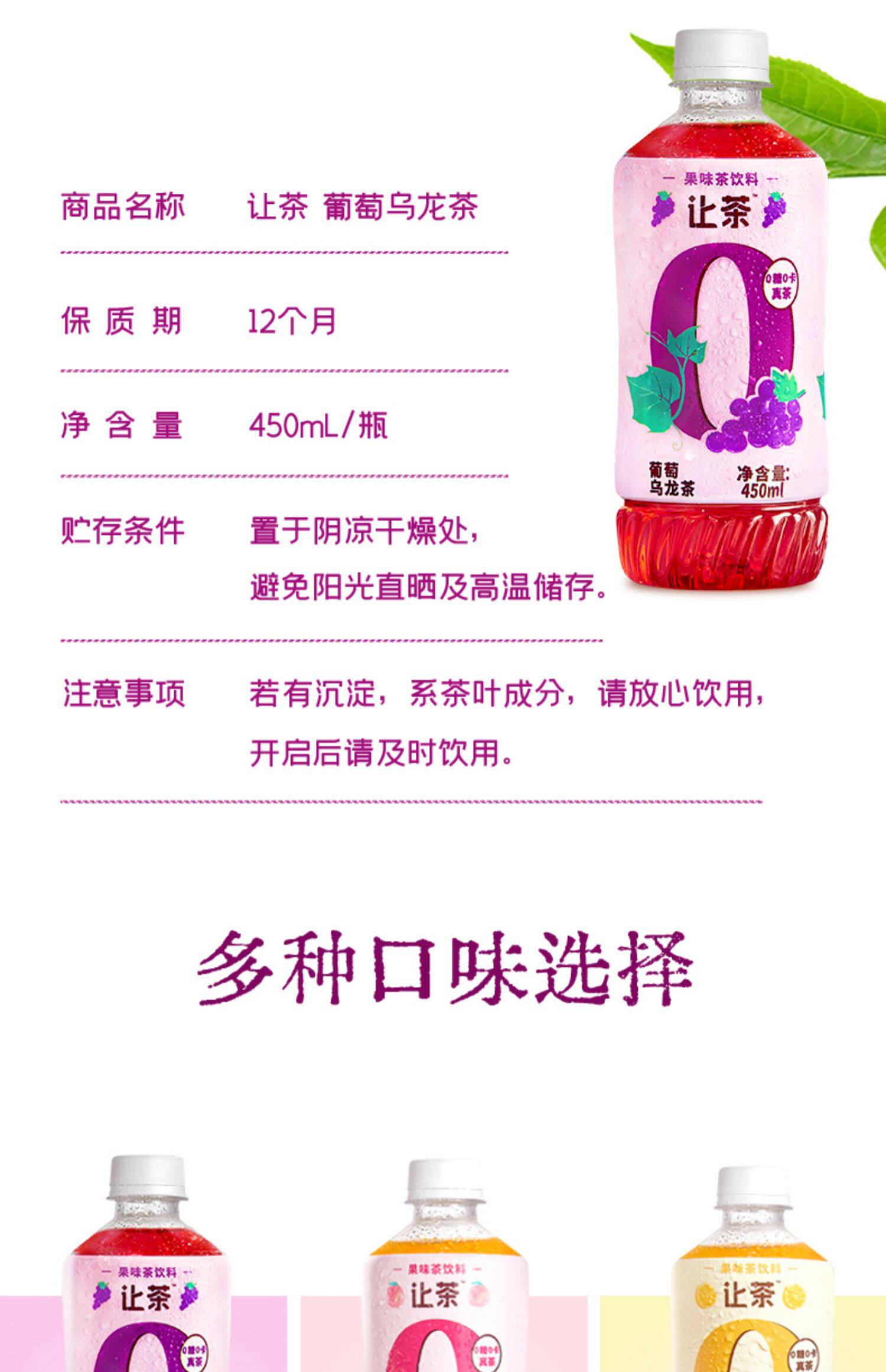 让茶 Конфеты -Бесплатный чайный напиток виноград Oolong Белый персик лимонный черный чай 0 сахар 0 жир 0 энергия 450 мл вся коробка