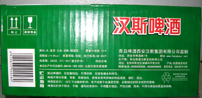 Qingdao Beer Shaanxi Hans 9 -Degree Cans 500 мл ледоволо