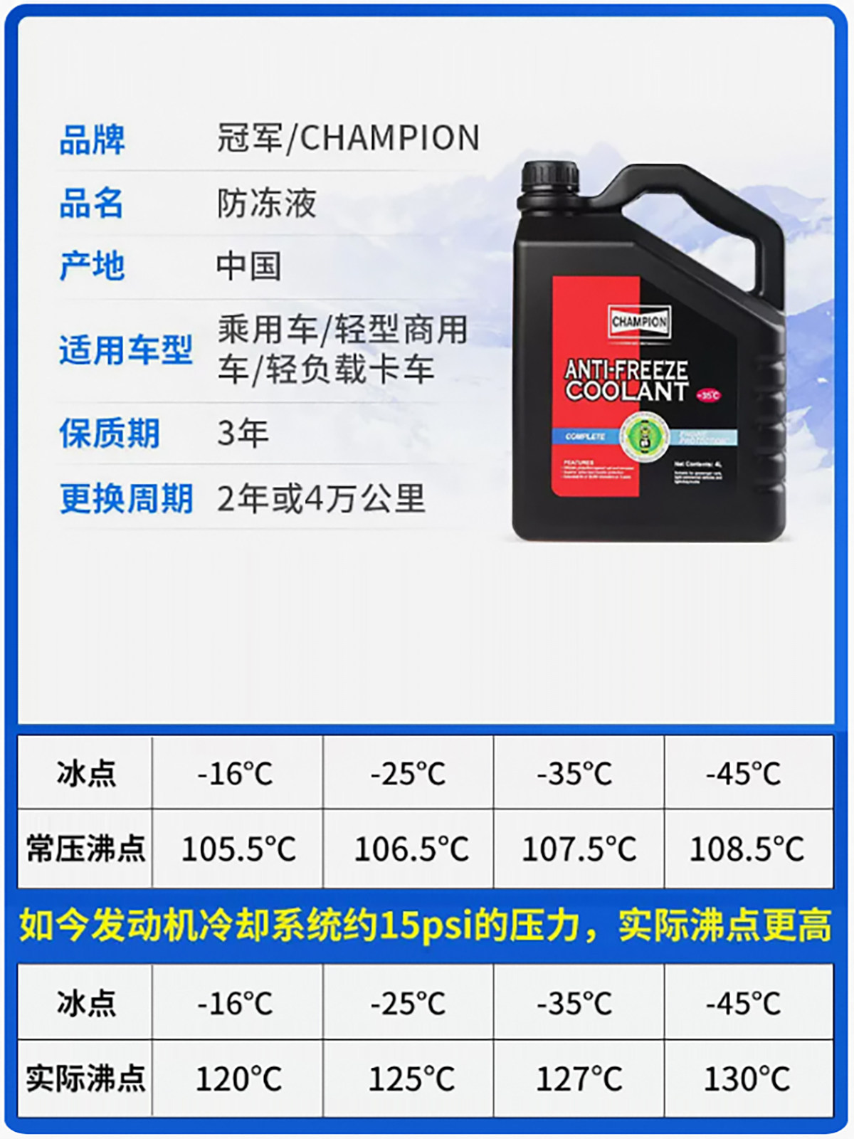 Чемпионский чемпион Auto Frozen Anti -Frozen Engine Line Line Line Water Tack Scure Frozen Four Seasons Common в течение четырех сезонов