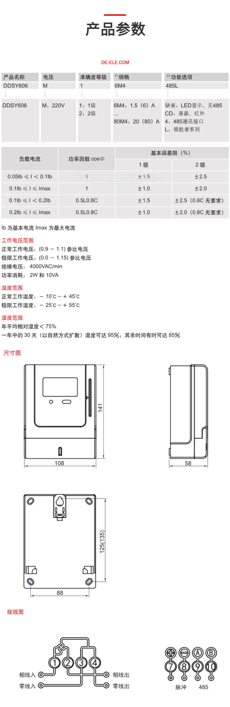 德力西 Предоплаченный электрический счетчик IC Вставка однофазного электронного интеллектуального электрического измерителя DDSY606 20A 40A