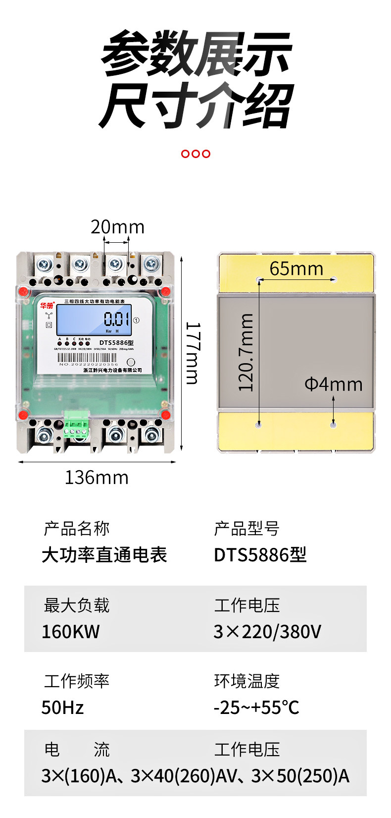 Huatai Threephase Four -Line 160a, 200a, 250a High -Power Direct Electrical Watch 380 В шкафа электрический счетчик Firewat Firewat
