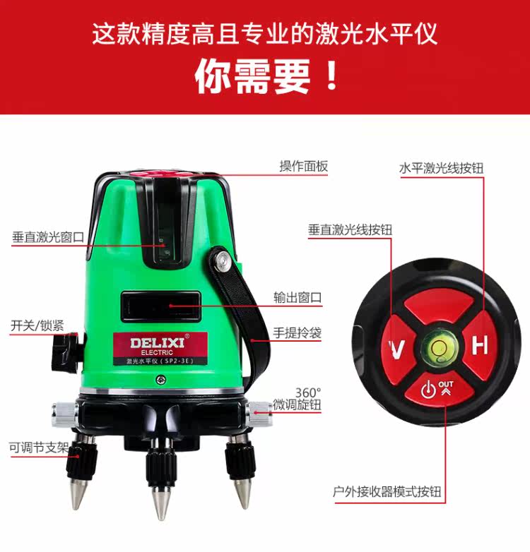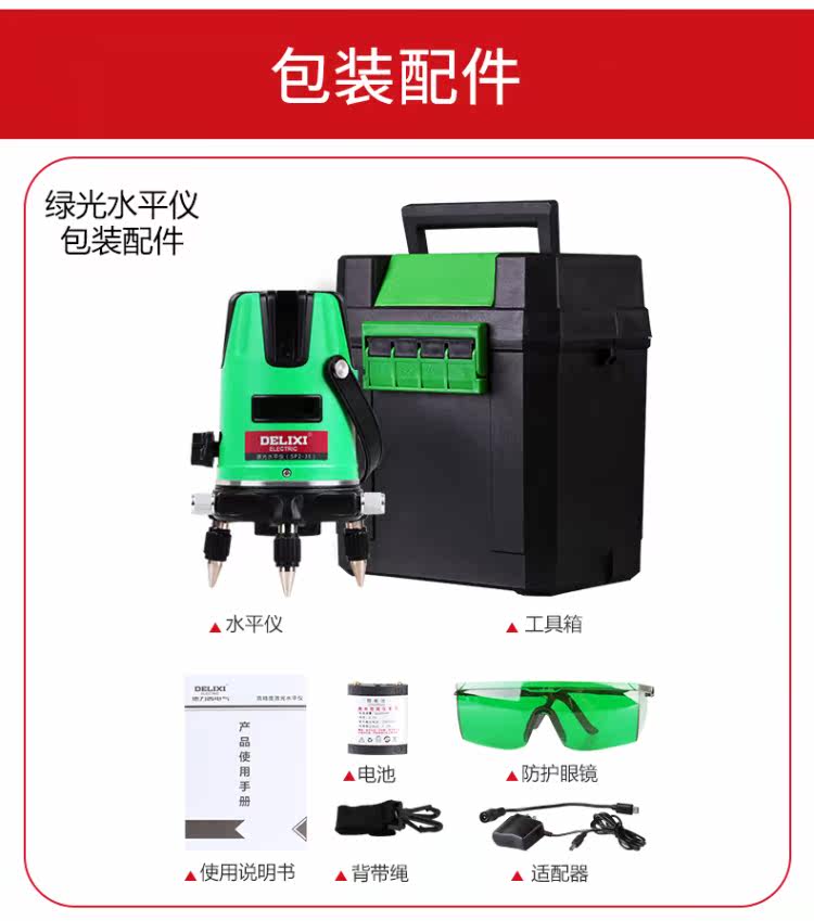 Delixi Laser Level 5 Line Red Light/Green Level Level Высокий