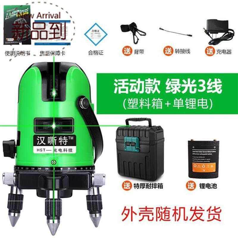 - Супер зеленый свет, 2 линии + двойная литиевая батарея + пластиковая коробка