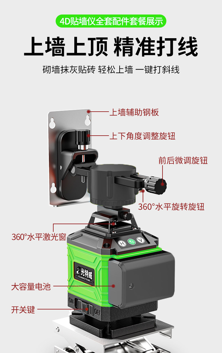 Высокий рецидив с высоким содержанием сильного света гигантского лазерного инфракрасного инфракрасного зеленого света горизонтальный измеритель 12 линий.