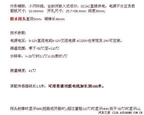 - Диапазон измерения температуры:-50℃ ~110℃