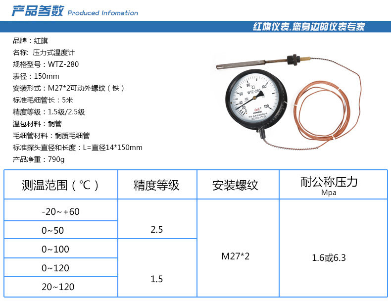 红旗 Термометр давления wtz-280. Должен быть настроен диапазон измерения температуры большего термометра измерения температуры